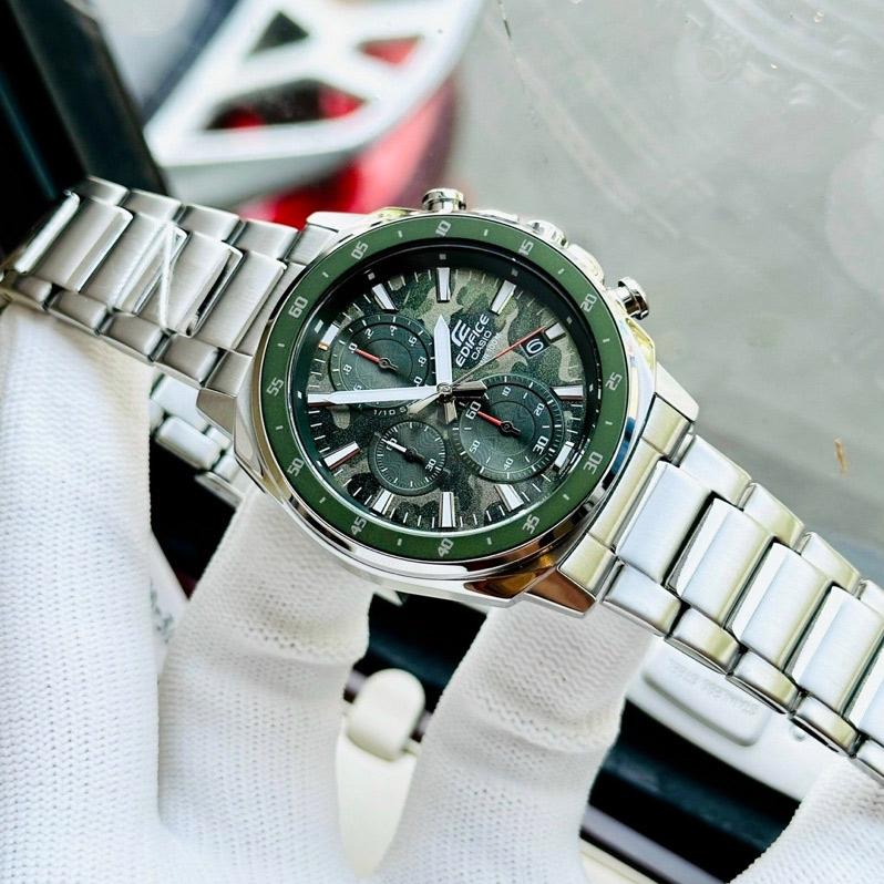 Мужские наручные часы Casio Edifice EFV-600D-3C. Точный кварцевый механизм с аналоговой индикацией. Корпус изготовлен из высококачественной нержавеющей стали 316L с высокими антикоррозийными свойствами. На стрелки и отметки нанесен светонакопительный состав, благодаря этому считывать информацию с циферблата возможно и в темноте. На циферблате отображается текущее число месяца. Функция хронографа. Браслет из нержавеющей стали. Прочное, устойчивое к царапинам минеральное стекло защищает часы от повреждений. Часы являются водонепроницаемыми до 10 Бар. Цвет корпуса: Серебристый. Цвет циферблата: Зеленый. Ширина (с заводной головкой): 49мм. Толщина: 11мм. Гарантия: 2 года. Другие наименования модели: EFV-600D-3CVUDF, EFV-610D-3CVUDF.