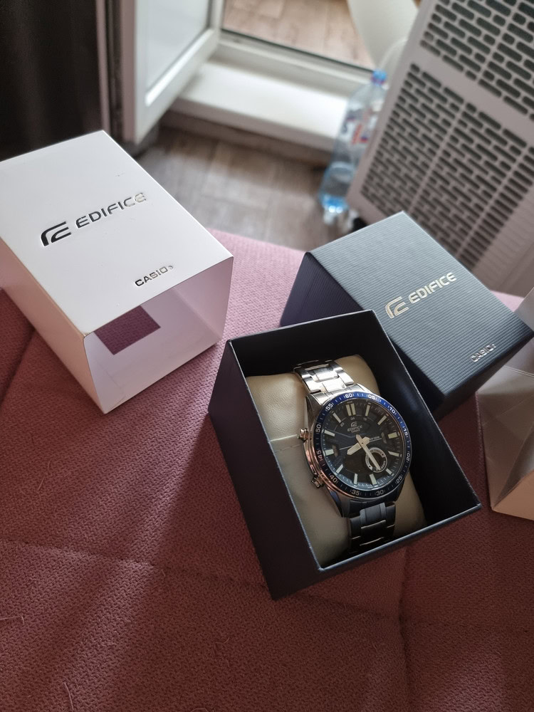 Часы оригинальные, кто пишет что не оригинальные видимо не разбираются либо конкуренты, доставка быстрая, цена сладкая, рекомендую. Продавец даже настроил их перед отправкой, мелочь но приятно, правда пришлось перестраивать, часовой пояс другой)) . В магазине где укорачивали ремешок подумали что мы приобрели их в ихней сети, это к вопросу о оригинальности! В общем часы хорошие, будем сотрудничать дальше, надеюсь в дальнейшем всё будет также отлично, спасибо продавцу большое!