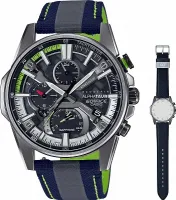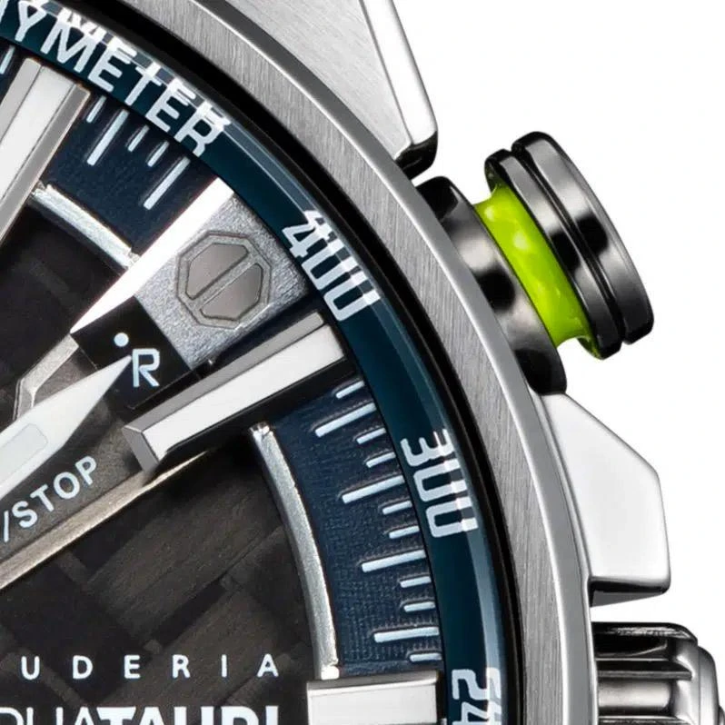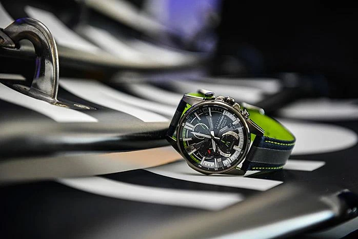Высокотехнологичный многострелочный хронограф с солнечным аккумулятором и Bluetooth-синхронизацией в тонком корпусе. Металлическая сетка на циферблате вдохновлена решетками радиаторов спорткаров. Весь функционал часов получает питание от солнечного аккумулятора, чья эффективность увеличена за счет того, что весь циферблат является солнечной панелью. Увеличению энергоэффективности так же способствует сапфировое стекло, которое не только надежно защищает циферблат от царапин, но и отличается максимальной прозрачностью среди всех типов стекол. Bluetooth-синхронизация обеспечивает простое взаимодействие со всеми функциями, например, переключение между основным и мировым временем, быструю настройку часов и высокую точность хода. Основные характеристики: стальной корпус, сапфировое стекло, стальной браслет, солнечный аккумулятор, Bluetooth-синхронизация, секундомер - 1/1 сек - 24 часа, мировое время, индикация даты, индикация дня недели, водонепроницаемость до 100 метров.