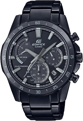 Мужские наручные часы Casio Edifice EQS-930TL-1A. Точный кварцевый механизм с аналоговой индикацией. Ремешок изготовлен из кожи. Функция хронографа. Солнечная батарейка. Солнечная подзаряжающаяся батарейка обеспечивает питание часов для работы. Индикатор запаса хода. Отображение времени возможно в 12-часовом или 24-часовом формате. Браслет из нержавеющей стали. Прочное, устойчивое к царапинам минеральное стекло защищает часы от повреждений. На циферблате отображается текущее число месяца. Часы являются водонепроницаемыми до 10 Бар. Цвет циферблата: Серебристый. Цвет циферблата: Черный. Цвет корпуса: Черный. На стрелки и отметки нанесен светонакопительный состав, благодаря этому считывать информацию с циферблата возможно и в темноте. Толщина: 13 мм. Гарантия: 2 года.