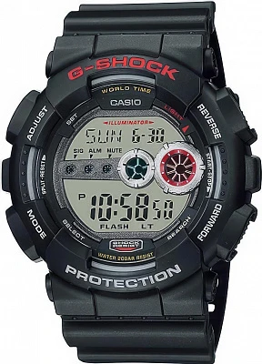 Электронные часы. • Элемент питания SR2025. Точность хода не хуже -/+15 сек./в месяц. . • Полностью автоматическая светодиодная подсветка повышенной яркости с автоматической активацией при и тусклом, неясном свете и выключением подсветки при достаточном освещении. • Отображение текущего времени в основных городах и регионах мира. • Секундомер с точностью показаний 1/100 сек и максимальным временем измерения - 24 час. • Таймер обратного осчета. • 5 ежедневных будильников. • Срок службы батареи 7 лет. • Автоматический календарь. • Функция выключения звука. • Особая ударопрочная конструкция защищает от ударов и вибрации. • Водозащита до 20 АТМ. • Минеральное стекло устойчивое к возникновению царапин. • Ремешок из полимерного материала. • Размеры корпуса 55 мм (по оси заводной головки) х 51,2 мм (по вертикали) х 17,4 мм (толщина) / 72 грамм.