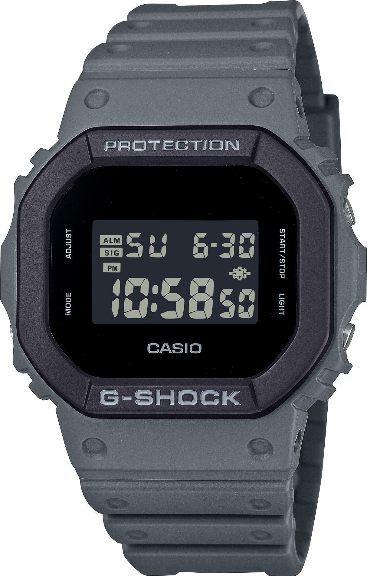 Мужские наручные часы Casio G-Shock DW-5610UU-8E. Точный кварцевый механизм с цифровой индикацей. Ударопрочная конструкция часов защищает от ударов и вибрации. Функция будильника. Функция таймера. Таймеры обратного отсчета напомнят Вам о текущих или особенных событиях, издав звуковой сигнал в установленное время. Для подсветки дисплея используется светодиод, а так же имеет функцию автоматического включения подсветки, если Вы наклоните часы к своему лицу. После настройки автоматический календарь всегда отображает точную дату. Отображение времени возможно в 12-часовом или 24-часовом формате. Аккумулятор обеспечивает часы достаточным питанием приблизительно на 5 лет. Прочное, устойчивое к царапинам минеральное стекло защищает часы от повреждений. Часы являются водонепроницаемыми до 3 Бар. Цвет циферблата: Серый. Цвет корпуса: Черный. Светодиодная подсветка. Толщина: 13 мм. Гарантия: 2 года.