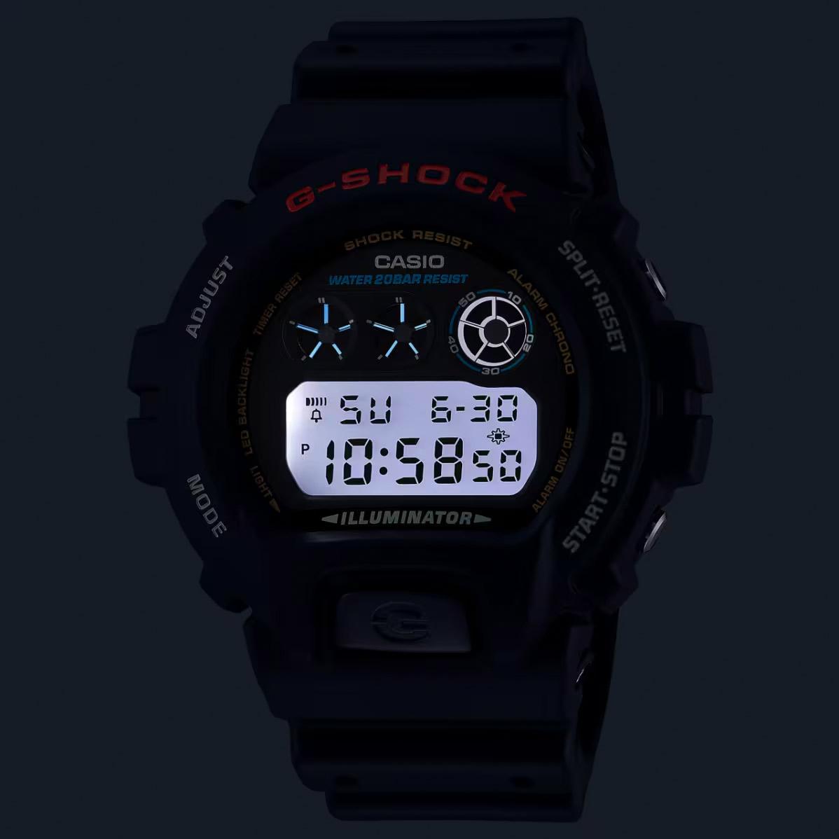 Мужские наручные часы Casio G-Shock DW-6900U-1E. Точный кварцевый механизм с цифровой индикацей. Полимерный корпус надежно защищает часы от механических повреждений. Светодиодная подсветка. Автоматический календарь. Авто подсветка. Будильник. Ежечасный сигнал. Хронограф. Мировое время. Таймер. 12/24-часовое отображение времени. Полимерный ремешок. Натуральный полимерный материал является идеальным для изготовления ремешка благодаря своей чрезвычайной прочности и гибкости. Прочное, устойчивое к царапинам минеральное стекло защищает часы от повреждений. Часы являются водонепроницаемыми до 20 Бар. Цвет корпуса: Черный. Цвет циферблата: Серый. Ширина (с заводной головкой): 50мм. Толщина: 19мм. Гарантия: 2 года. Другие наименования модели: DW-6900U-1.