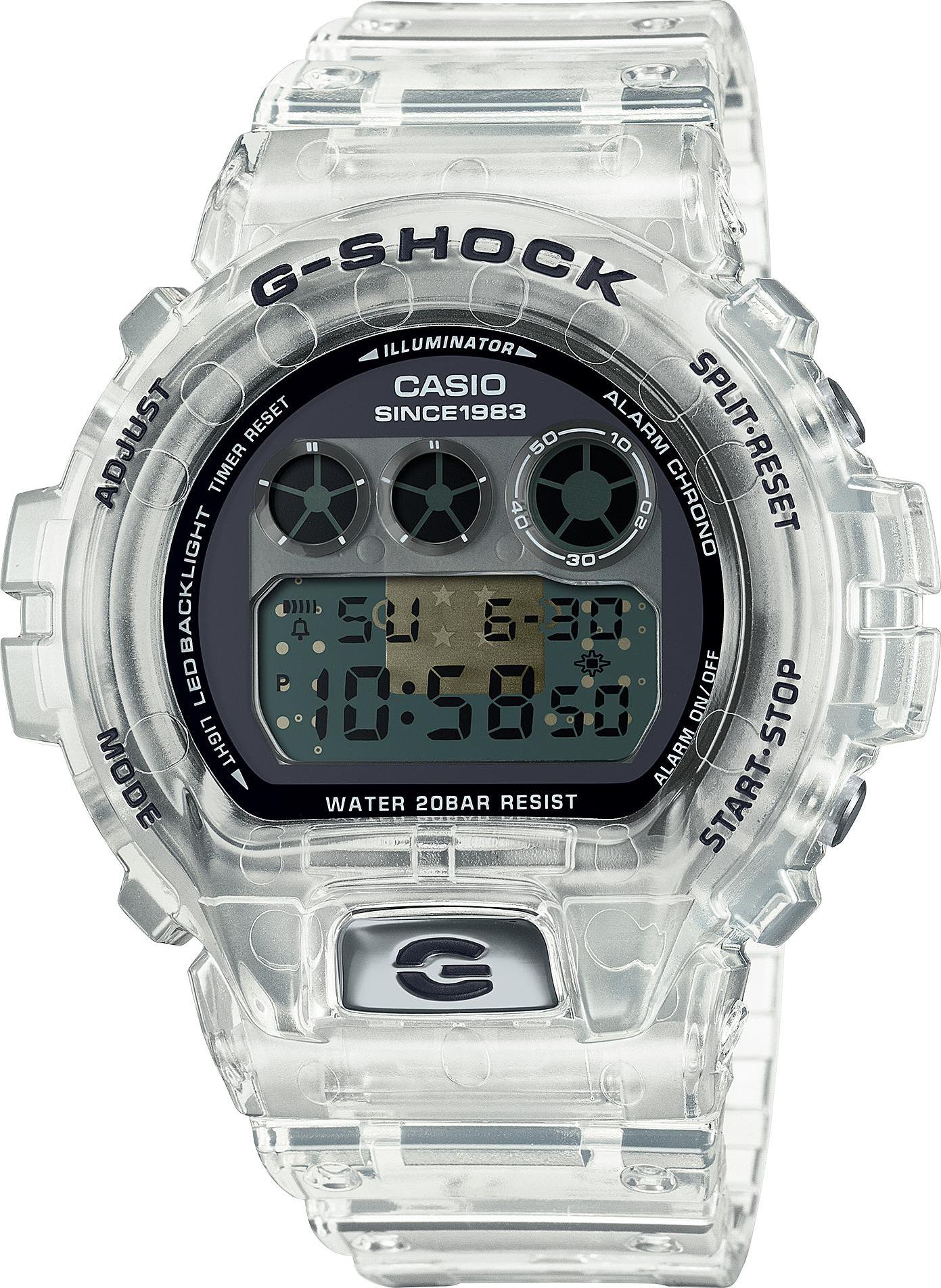 Лимитированная новинка от Casio - настоящая находка для любителей уникальных аксессуаров. G-Shock 40th Anniversary Clear Remix. Лимитированная серия посвящена 40-летию G-SHOCK. Противоударный корпус защищает механизм от ударов и вибрации. Электролюминесцентная подсветка освещает весь циферблат, после отпускания кнопки свечение продолжается еще некоторое время. Цвет подсветки: белый. Световая индикация сигнала. Типы сигналов: ежедневный, ежемесячный, каждый день определенного месяца, на определенную дату. 12-ти и 24-х часовой формат времени. Секундомер с двумя точностями показаний: 1/100с (до 1ч) и 1с (после 1ч) и временем измерения 24ч. SPLIT-хронограф. Таймер обратного отсчета от 1с до 24ч с автоповтором. Батарея рассчитана на 3 года. Задняя крышка крепится на 4-х винтах и украшена логотипом, созданным граффити-художником Эриком Хейзом в ознаменование 40-летия G-SHOCK. Ремешок с классической застежкой. Подарочная упаковка.