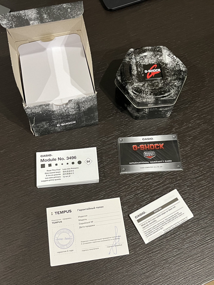 Модуль 3496, русский язык дня недели, человеческое отображение даты (день/месяц), солнышко - все на месте. Для тех, кто не паникует и понимает почему нет инструкции на русском - версии часов с индексом DR не предназначены для европейского рынка, вот и все. Для опытных пользователей Casio и в особенности фанатов G-Shock это вообще не проблема))