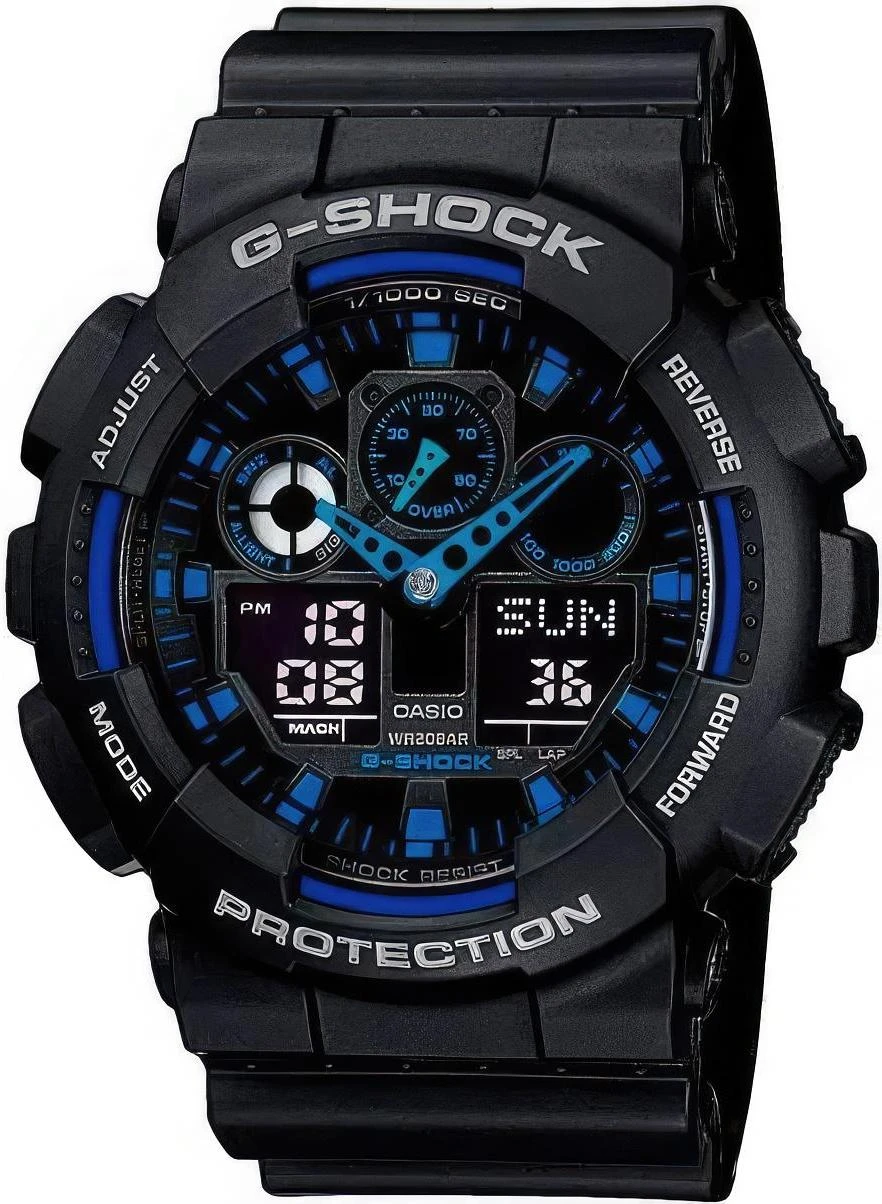 Ударопрочные многофункциональные часы со светодиодной подсветкой и функцией автоматической подсветки Точность хода: не хуже +/-15 секунд в месяц. Срок службы батареи 2 года. Элемент питания CR1220. Электрическая светодиодная подсветка. Точное измерение прошедшего времени одним нажатием кнопки. Максимальное время измерения 100 часов. Таймер с функцией автоповтора. Максимальное время измерения 24 часа. 5 ежедневных будильников. Минеральное стекло устойчивое к возникновению царапин. Ремешок из полимерного материала. Водозащита до 20 АТМ. Размеры корпуса 55 мм (по оси заводной головки) х 51,2 мм (по вертикали) х 16,9 мм (толщина) / 70 грамм.