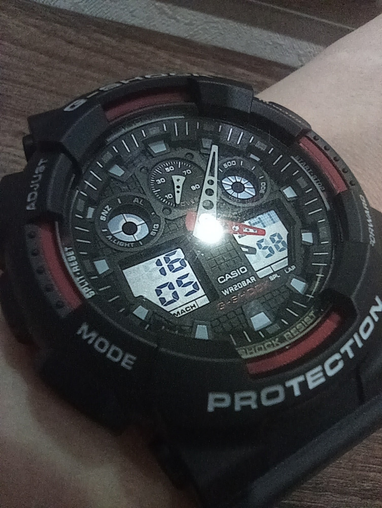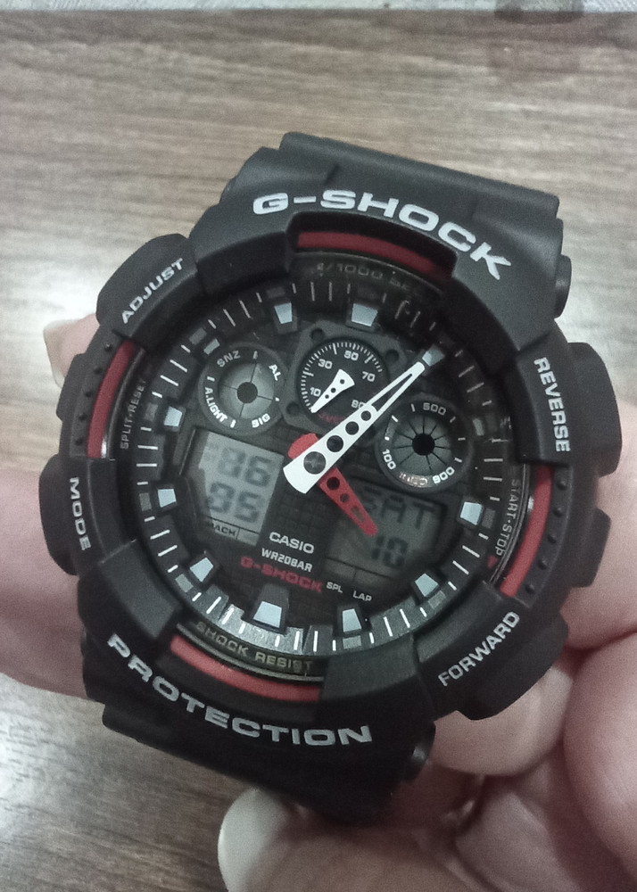Точность хода: не хуже +/-15 секунд в месяц. • Срок службы батареи 2 года. • Элемент питания CR1220. • Электрическая светодиодная подсветка с функцией автоматической подсветки при наклоне часов к лицу. • Точное измерение прошедшего времени одним нажатием кнопки. Максимальное время измерения 100 часов. • Таймер с функцией автоповтора. Максимальное время измерения 24 часа. • 5 ежедневных будильников. • Функция повтора сигнала будильника (Snooze). • Автоматический календарь. • Особая ударопрочная конструкция защищает от ударов и вибрации. • Магнитоустойчивость по 1 разряду Японского промышленного стандарта (Соответствует стандарту MOC-ISO 764) обеспечивает устойчивость к воздействию магнитных полей. • Минеральное стекло устойчивое к возникновению царапин. • Ремешок из полимерного материала. • Водозащита до 20 АТМ. • Размеры корпуса 55 мм (по оси заводной головки) х 51,2 мм (по вертикали) х 16,9 мм (толщина) / 70 грамм.