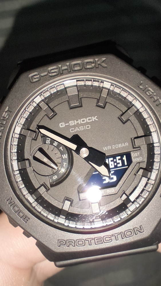 Замечательные часы, на картинке выглядят гораздо больше чем есть на самом деле, на самом деле это небольшие и аккуратные часы, особенно по стандартам джи-шок. Однако, у часов есть и минус - люминесцентная подсветка нанесена только на стрелки, а на часовые обозначения нет, так что ночью быстрым взглядом время узнать проблематично, всегда приходится включать подсветку. А так вполне себе dress watch от мира жишоков
