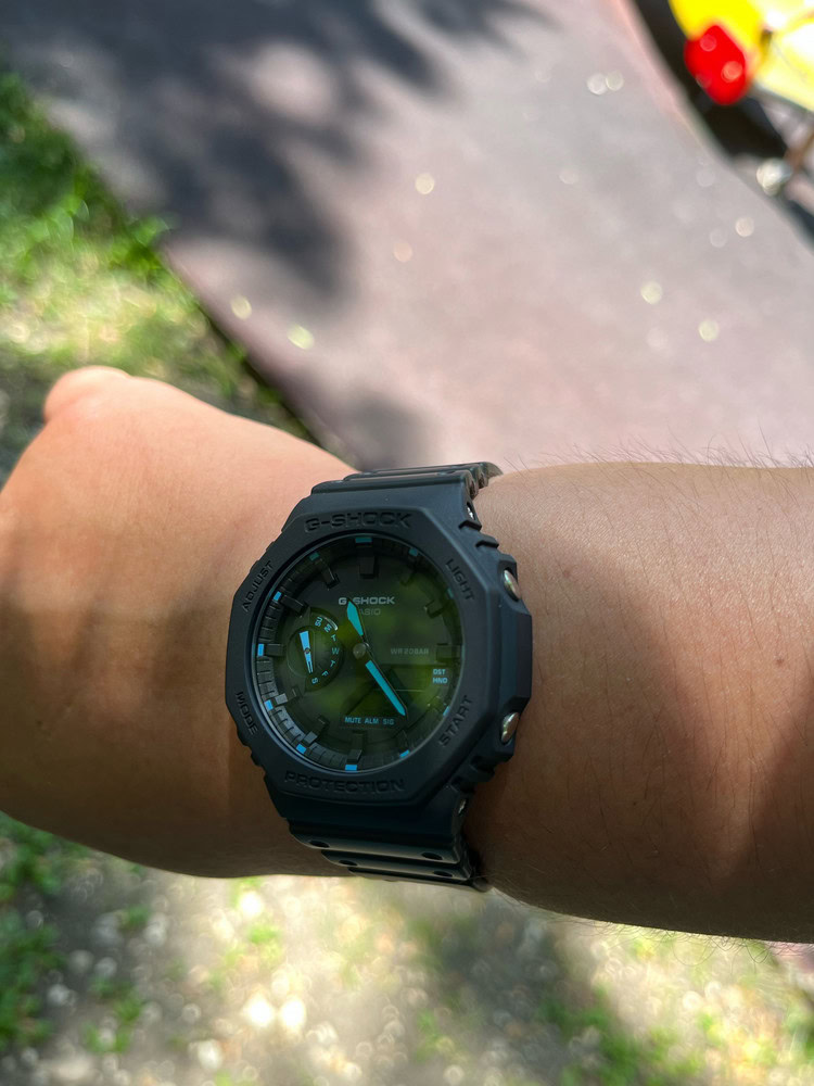 Компания CASIO представляет обновленное цветовое решение уже культовой модели GA-2100 в коллекции "FOGGY FOREST". Особенностью коллекции является использование смешанных полимеров для производства ремешков и корпусов, что создает уникальные цветовые решения. Модель GA-2100FR-3 выполнена в различных оттенках зеленого, которые переливаются и создают ощущение таинственного, туманного леса. Особенностью часов GA-2100 является узнаваемый дизайн, отсылающий к первым часам G-SHOCK в квадратном корпусе.