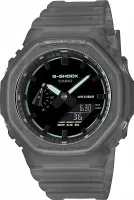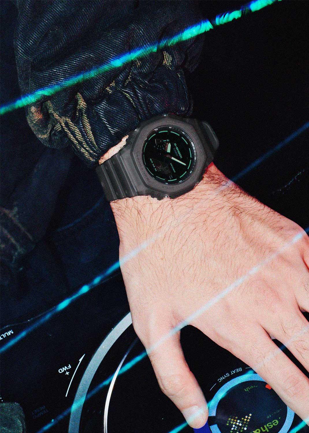 Мужские часы G-Shock GA-2100K-1A. Полупрозрачный корпус и ремешок вдохновлены клубными тусовками и ночной жизнью мегаполиса. Структура Carbon Core Guard. Противоударный пластиковый корпус с карбоновыми волокнами более прочный и, в то же время, более легкий. Этот же материал защищает внутренний модуль от повреждений и деформаций при ударах. Двойная подcветка: циферблат и ЖК-дисплеи подсвечиваются светодиодом, благодаря наличию функции задержки, после отпускания кнопки освещение горит еще несколько секунд. Настраиваемое послесвечение 1,5 или 3сек. Цвет подсветки: белый. Необритовое светонакопительное покрытие обеспечивает длительное послесвечение в темноте даже после кратковременного нахождения на свету. 12-ти и 24-х часовой формат времени. Секундомер с двумя точностями показаний: 1/100с (до 1ч) и 1с (после 1ч) и временем измерения 24ч. Режимы измерения: прошедшее время, промежуточное время, время 1-го и 2-го места. Таймер обратного отсчета от 1с до 24ч. Автоматические календарь до 2099 года. 5 будильников, ежечасный сигнал. Мировое время – 48 городов (31 часовой пояс), всемирное координированное время (UTC). Функция включения/отключения летнего времени. Ретроградный указатель для недели. Функции отключения/включения звука и перемещения стрелок для беспрепятственного просмотра информации на цифровых дисплеях. Стальная задняя крышка крепится на 4-х винтах. Батарейка рассчитана на 3 года. Ремешок из полимерного материала с классической застежкой и системой быстрой замены.