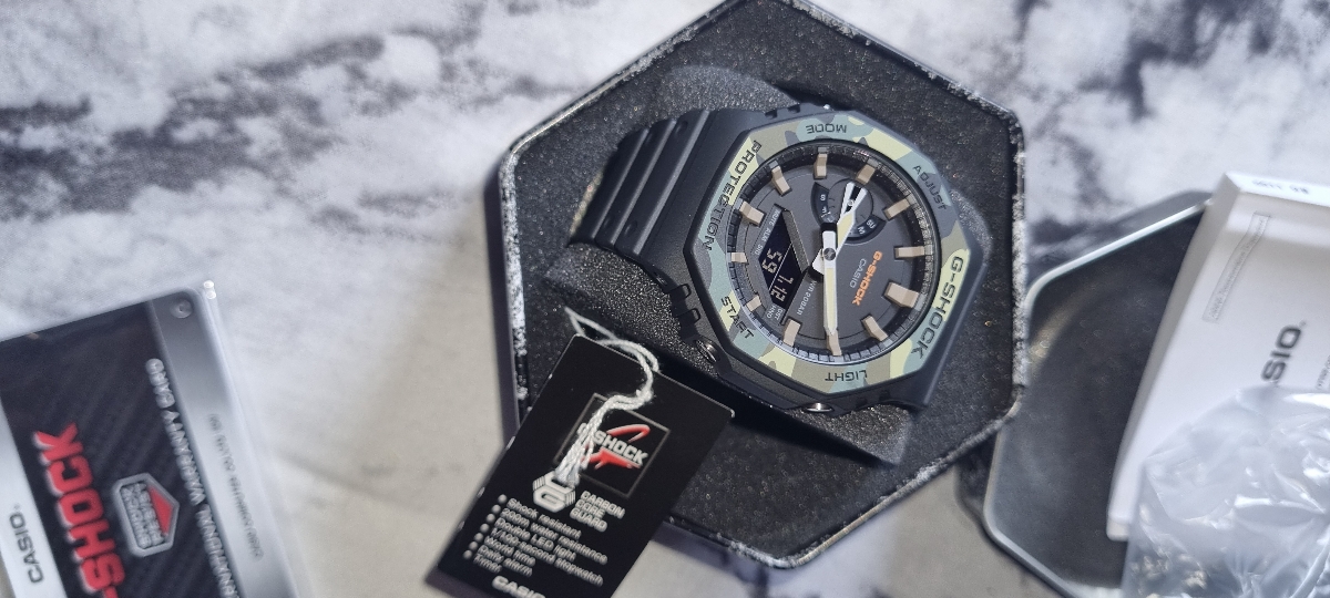 • Усиленный углеродными волокнами резиновый корпус. Резина обладает высокой прочностью и является идеальным материалом для часов. В сочетании с высокой устойчивостью карбона мы имеем корпус, который по-прежнему способен выдержать высокую нагрузку и мало восприимчив к внешним воздействиям, и при этом предлагает дополнительную прочность.