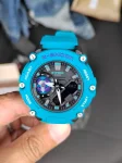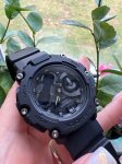 Мужские кварцевые часы с аналого-цифровым вариантом отображения времени из серии G-Shock. Круглый карбоновый корпус черного цвета. Черный циферблат. Минеральное стекло. Водозащита 200 м. Черный пластиковый ремешок с классической пряжкой.