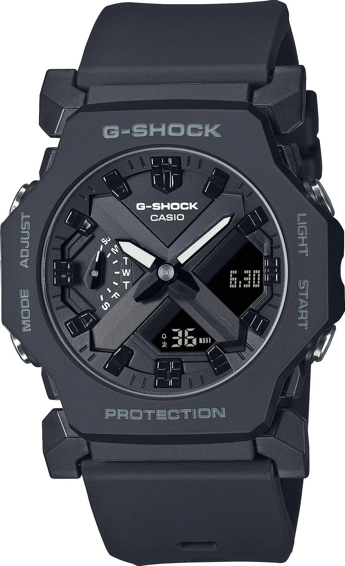 Мужские наручные часы Casio G-Shock GA-2300-1A. Точный кварцевый механизм с аналого-цифровой индикацией. Полимерный ремешок. Натуральный полимерный материал является идеальным для изготовления ремешка благодаря своей чрезвычайной прочности и гибкости. После настройки автоматический календарь всегда отображает точную дату. Для подсветки дисплея используется светодиод, а так же имеет функцию автоматического включения подсветки, если Вы наклоните часы к своему лицу. Аккумулятор обеспечивает часы достаточным питанием приблизительно на 3 года. Функция будильника. Ежечасный сигнал. Функция хронографа. Отображение текущего времени в основных городах и конкретных областях по всему миру. Функция перемещения стрелок. Нажатие на кнопку обеспечит перемещение стрелок в такое положение, которое позволит Вам легко считать информацию с маленьких цифровых дисплеев – например, дату или показатели секундомера. Функция таймера. Таймеры обратного отсчета напомнят Вам о текущих или особенных событиях, издав звуковой сигнал в установленное время. Ударопрочная конструкция часов защищает от ударов и вибрации. Отображение времени возможно в 12-часовом или 24-часовом формате. Полимерный ремешок. Натуральный полимерный материал является идеальным для изготовления ремешка благодаря своей чрезвычайной прочности и гибкости. Прочное, устойчивое к царапинам минеральное стекло защищает часы от повреждений. Часы являются водонепроницаемыми до 20 Бар. Цвет циферблата: Черный. Цвет корпуса: Черный. Светодиодная подсветка. Высота (с ушками): 45 мм. Толщина: 12 мм. Гарантия: 2 года.