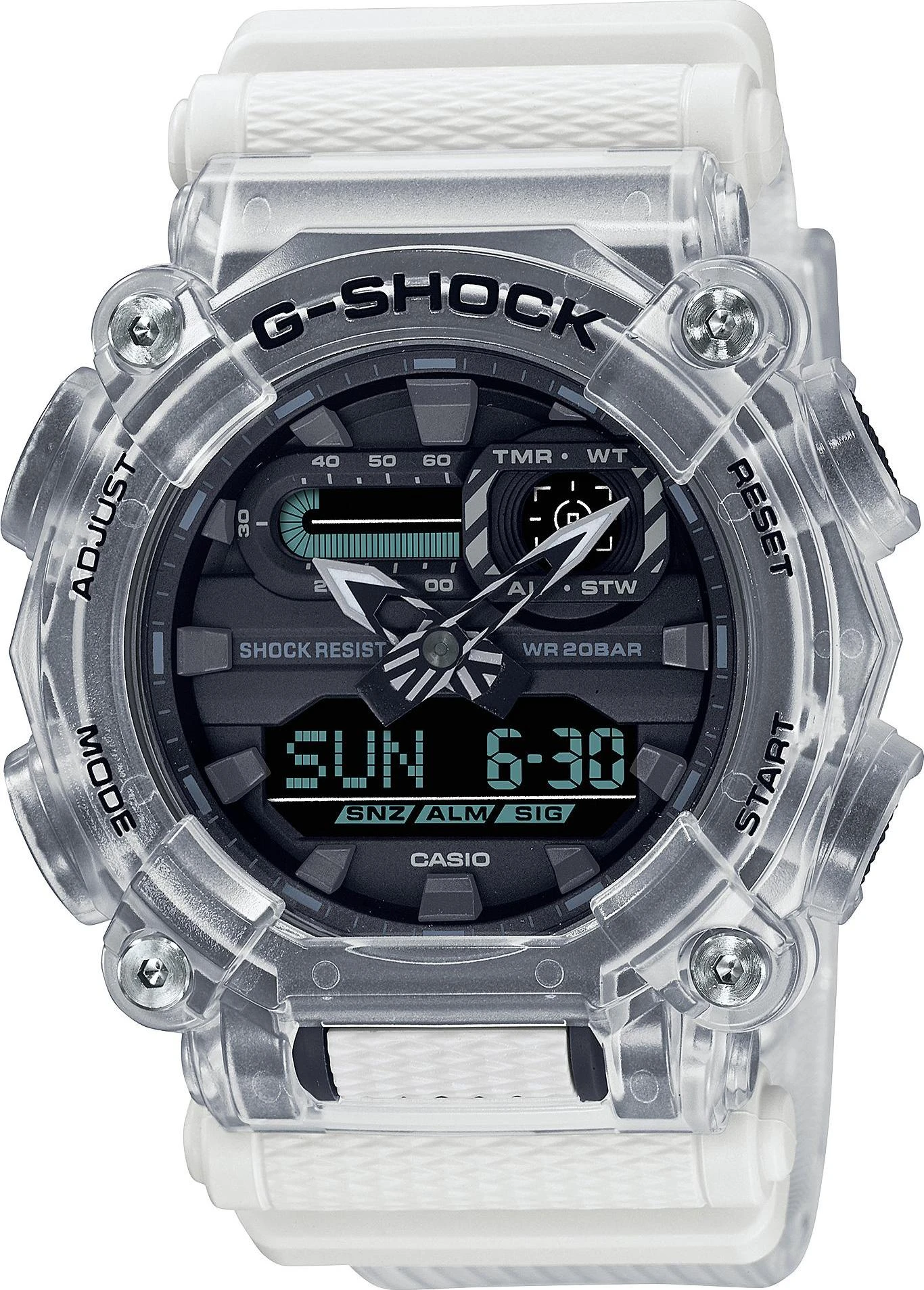 Мужские наручные часы Casio G-Shock GA-900SKL-7A. Точный кварцевый механизм с аналого-цифровой индикацией. Полимерный корпус надежно защищает часы от механических повреждений. Светодиодная подсветка. На циферблате отображается текущее число, месяц и день недели. Ударопрочная конструкция часов защищает от ударов и вибрации. Функция хронографа. Функция будильника. Аккумулятор обеспечивает часы достаточным питанием приблизительно на 7 лет. Отображение текущего времени в основных городах и конкретных областях по всему миру. После настройки автоматический календарь всегда отображает точную дату. Отображение времени возможно в 12-часовом или 24-часовом формате. Полимерный ремешок. Натуральный полимерный материал является идеальным для изготовления ремешка благодаря своей чрезвычайной прочности и гибкости. Прочное, устойчивое к царапинам минеральное стекло защищает часы от повреждений.Часы являются водонепроницаемыми до 20 Бар. Цвет корпуса: Серый. Цвет циферблата: Черный. Ширина (с заводной головкой): 53мм. Толщина: 17мм. Гарантия: 2 года. Другие наименования модели: GA-900SKL-7AER, GA-900SKL-7ADR.