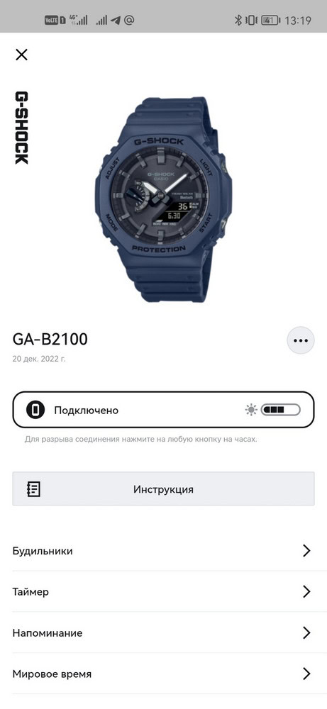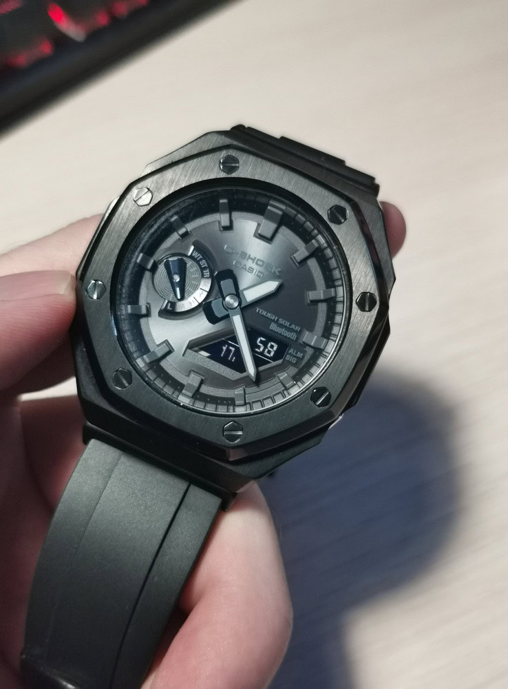 Покупал часы в конце ноября 22 года, часы отличные, всё работает, подзарядки от солнца, когда часы долго в темноте включается сберегающий режим, который можно отключить, блютуз подключил через касио приложение, довольно-таки удобно настраивать через смартфон. После месяца использования захотелось поменять ремень и корпус, вот заменил на чёрный, стандартный хорош, для разнообразия хочется иногда другого. Этим кстати и удобны часы, что модно заказать всё на свой лад под них