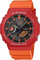 Редкая лимитированная модель 2025 года — коллаборация G-Shock и Фонда имени Чарльза Дарвина в красном матовом корпусе GA-B2100 на сером полупрозрачном полимерном ремешке. Коллаборация посвящена фауне Галапагосских островов, ведь именно прибывая там в 1835 году Чарльзу Дарвину пришла идея о его теории эволюции. Каждая из вышедших лимитированных моделей посвящена одному из редких обитателей животного мира архипелага. Для данной модели был выбран краб Sally Lightfoot, который обитает на скалистых берегах и песчаных пляжах Галапагосов. Именно в виде силуэта данного краба реализован индикатор режима часов у девяти часов по циферблату, а также на держателе ремешка. На циферблате можно заметить карту Галапагосских островов, а яркие окончания стрелок похожи на клешни краба. На ремешке вы найдете слоган на испанском: “Apoyo la conservación de Galápagos”. В переводе это означает: “Я поддерживаю сохранение Галапагосских островов”. Модель сохранила внешний облик своих предшественников по серии GA-2100, но получила более технологичный модуль с синхронизацией со смартфоном через Bluetooth и солнечной батареей. В остальном модель по-прежнему отличается от других G-Shock своей легкостью, компактностью и толщиной корпуса всего 11.9 мм, что стало возможным благодаря технологии Carbon Core Guard: модуль часов защищает легкий и сверхпрочный полиуретановый корпус с углеродным армированием, а циферблат покрыт закаленным минеральным стеклом.
