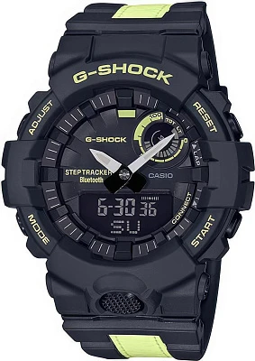 Многофункциональные ударопрочные часы G-Shock из серии G-Squad с мониторингом ежедневной активности благодаря встроенному акселерометру. Еще GBA-800 может обмениваться данными с мобильным приложением в смартфоне по Bluetooth. Водозащита 200 метров.