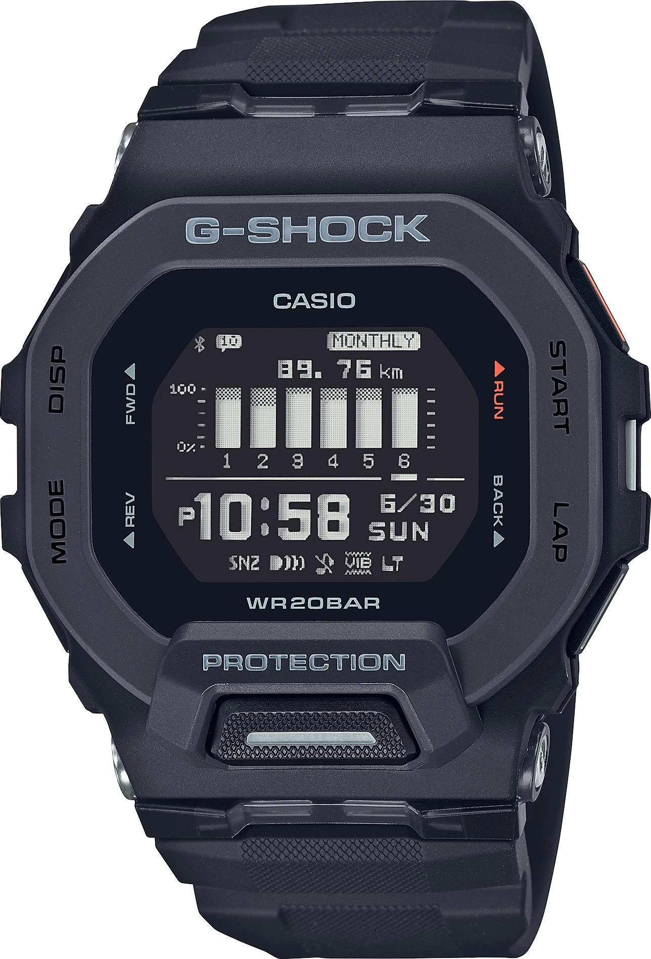 Мужские наручные часы Casio G-Shock GBD-200-1E. Точный кварцевый механизм с цифровой индикацией. Полимерный корпус надежно защищает часы от механических повреждений. Светодиодная подсветка. На циферблате отображается текущее число, месяц, год и день недели. Ударопрочная конструкция часов защищает от ударов и вибрации. Функция Bluetooth позволяет удобно отображать все метрики с часов на экране смартфона, а также выводить на часы уведомления о входящих звонках, сообщениях и имейлах. Функция хронографа. Функция будильника. Аккумулятор обеспечивает часы достаточным питанием приблизительно на 2 года. Отображение текущего времени в основных городах и конкретных областях по всему миру. После настройки автоматический календарь всегда отображает точную дату. Отображение времени возможно в 12-часовом или 24-часовом формате. Полимерный ремешок. Натуральный полимерный материал является идеальным для изготовления ремешка благодаря своей чрезвычайной прочности и гибкости. Прочное, устойчивое к царапинам минеральное стекло защищает часы от повреждений.Часы являются водонепроницаемыми до 20 Бар. Цвет корпуса: Черный. Цвет циферблата: Черный. Гарантия: 2 года.