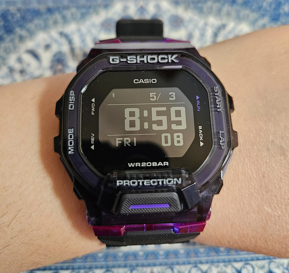Мужские наручные часы Casio G-Shock GBD-200SM-1A6. Точный кварцевый механизм с цифровой индикацией. Полимерный корпус надежно защищает часы от механических повреждений. Светодиодная подсветка. На циферблате отображается текущее число, месяц и день недели. Ударопрочная конструкция часов защищает от ударов и вибрации. Функция Bluetooth позволяет удобно отображать все метрики с часов на экране смартфона, а также выводить на часы уведомления о входящих звонках, сообщениях и имейлах. Функция хронографа. Функция будильника. Аккумулятор обеспечивает часы достаточным питанием приблизительно на 2 года. Отображение текущего времени в основных городах и конкретных областях по всему миру. После настройки автоматический календарь всегда отображает точную дату. Модель оснащена технологией SMART ACCESS, обеспечивающей быстрый и интуитивно понятный доступ ко всем важным функциям часов с помощью электронной заводной головки. Отображение времени возможно в 12-часовом или 24-часовом формате. Полимерный ремешок. Натуральный полимерный материал является идеальным для изготовления ремешка благодаря своей чрезвычайной прочности и гибкости. Прочное, устойчивое к царапинам минеральное стекло защищает часы от повреждений.Часы являются водонепроницаемыми до 20 Бар. Цвет корпуса: Фиолетовый. Цвет циферблата: Фиолетовый. Ширина (с заводной головкой): 49мм. Толщина: 15мм. Гарантия: 2 года.