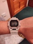 Мужские наручные часы Casio G-Shock GBX-100-8E. Точный кварцевый механизм с цифровой индикацей. Полимерный ремешок. Натуральный полимерный материал является идеальным для изготовления ремешка благодаря своей чрезвычайной прочности и гибкости. После настройки автоматический календарь всегда отображает точную дату. Для подсветки дисплея используется светодиод, а так же имеет функцию автоматического включения подсветки, если Вы наклоните часы к своему лицу. Функция Bluetooth позволяет удобно отображать все метрики с часов на экране смартфона, а также выводить на часы уведомления о входящих звонках, сообщениях и имейлах. Функция будильника. Ежечасный сигнал. Отображение фаз Луны. Часы определяют возраст Луны в текущий момент для текущего местоположения. Функция хронографа. Отображение текущего времени в основных городах и конкретных областях по всему миру. Шагомер. Функция таймера. Таймеры обратного отсчета напомнят Вам о текущих или особенных событиях, издав звуковой сигнал в установленное время. Ударопрочная конструкция часов защищает от ударов и вибрации. Отображение времени возможно в 12-часовом или 24-часовом формате. Полимерный ремешок. Натуральный полимерный материал является идеальным для изготовления ремешка благодаря своей чрезвычайной прочности и гибкости. Прочное, устойчивое к царапинам минеральное стекло защищает часы от повреждений. На циферблате отображается текущее число, месяц и день недели. Часы являются водонепроницаемыми до 20 Бар. Цвет циферблата: Серебристый. Цвет корпуса: Черный. Светодиодная подсветка. Высота (с ушками): 51 мм. Толщина: 15 мм. Гарантия: 2 года.
