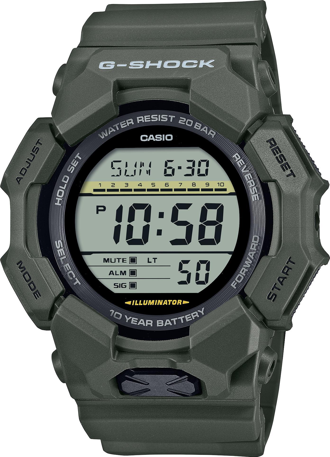 Мужские наручные часы Casio G-Shock GD-010-3E. Точный кварцевый механизм с цифровой индикацей. Полимерный ремешок. Натуральный полимерный материал является идеальным для изготовления ремешка благодаря своей чрезвычайной прочности и гибкости. После настройки автоматический календарь всегда отображает точную дату. Аккумулятор обеспечивает часы достаточным питанием приблизительно на 10 лет. Функция будильника. Ежечасный сигнал. Функция хронографа. Отображение текущего времени в основных городах и конкретных областях по всему миру. Функция таймера. Таймеры обратного отсчета напомнят Вам о текущих или особенных событиях, издав звуковой сигнал в установленное время. Ударопрочная конструкция часов защищает от ударов и вибрации. Отображение времени возможно в 12-часовом или 24-часовом формате. Полимерный ремешок. Натуральный полимерный материал является идеальным для изготовления ремешка благодаря своей чрезвычайной прочности и гибкости. Прочное, устойчивое к царапинам минеральное стекло защищает часы от повреждений. На циферблате отображается текущее число, месяц и день недели. Часы являются водонепроницаемыми до 20 Бар. Цвет циферблата: Серый. Цвет корпуса: Серый. Цвет корпуса: Черный. Светодиодная подсветка. Высота (с ушками): 55 мм. Толщина: 16 мм. Гарантия: 2 года.