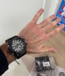 Часы массивные , циферблат толстый и можно сказать высокий , проверили-оригинал, в темноте стрелки и черточки на цифрах светятся , компас показывает , в общем все работает, на морозе - 18 не запотевают ( читала в отзывах что такое бывает в подделках , у этих часов все идеально), на руке смотрятся немного громоздко, но на мужчине ростом 182 смотрятся гармонично.