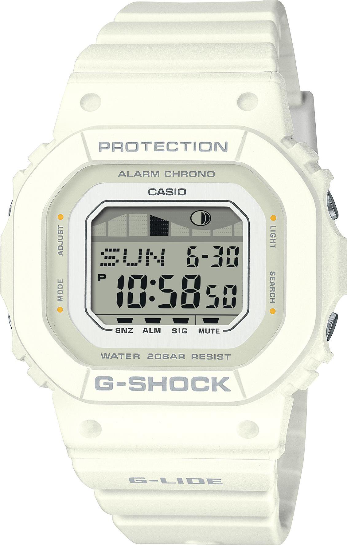 Женские наручные часы Casio G-Shock GLX-S5600-7B. Точный кварцевый механизм с цифровой индикацей. Полимерный ремешок. Натуральный полимерный материал является идеальным для изготовления ремешка благодаря своей чрезвычайной прочности и гибкости. После настройки автоматический календарь всегда отображает точную дату. Для подсветки дисплея используется светодиод, а так же имеет функцию автоматического включения подсветки, если Вы наклоните часы к своему лицу. Функция будильника. Ежечасный сигнал. Функция хронографа. Отображение текущего времени в основных городах и конкретных областях по всему миру. Функция таймера. Таймеры обратного отсчета напомнят Вам о текущих или особенных событиях, издав звуковой сигнал в установленное время. Отображение времени возможно в 12-часовом или 24-часовом формате. Полимерный ремешок. Натуральный полимерный материал является идеальным для изготовления ремешка благодаря своей чрезвычайной прочности и гибкости. Прочное, устойчивое к царапинам минеральное стекло защищает часы от повреждений. На циферблате отображается текущее число, месяц и день недели. Часы являются водонепроницаемыми до 20 Бар. Цвет циферблата: Белый. Цвет корпуса: Серый. Светодиодная подсветка. Высота (с ушками): 46 мм. Толщина: 12 мм. Гарантия: 2 года.