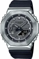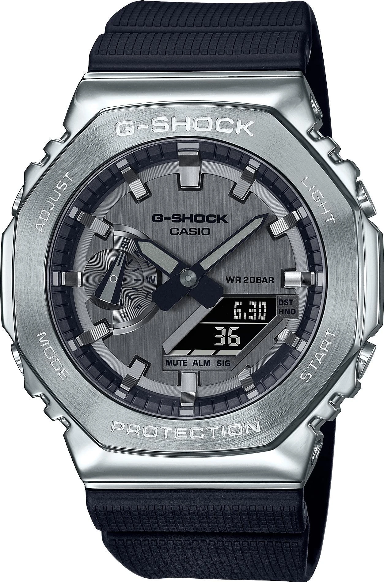 Мужские кварцевые часы из серии G-Shock. Комбинированный круглый корпус из нержавеющей стали и пластика. Серый аналого-цифровой циферблат. Минеральное стекло. Водозащита 200 м. Пластиковый черный ремешок с системой быстрой замены. Простая пряжка.