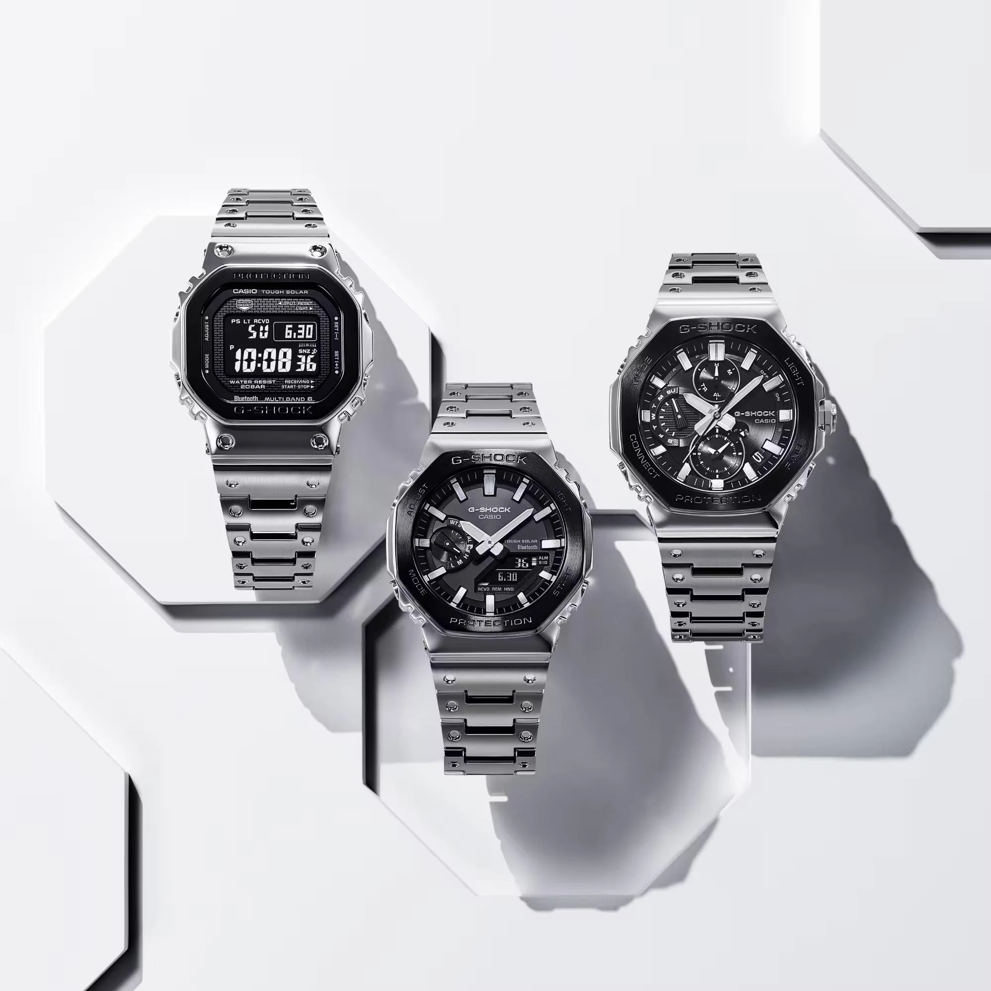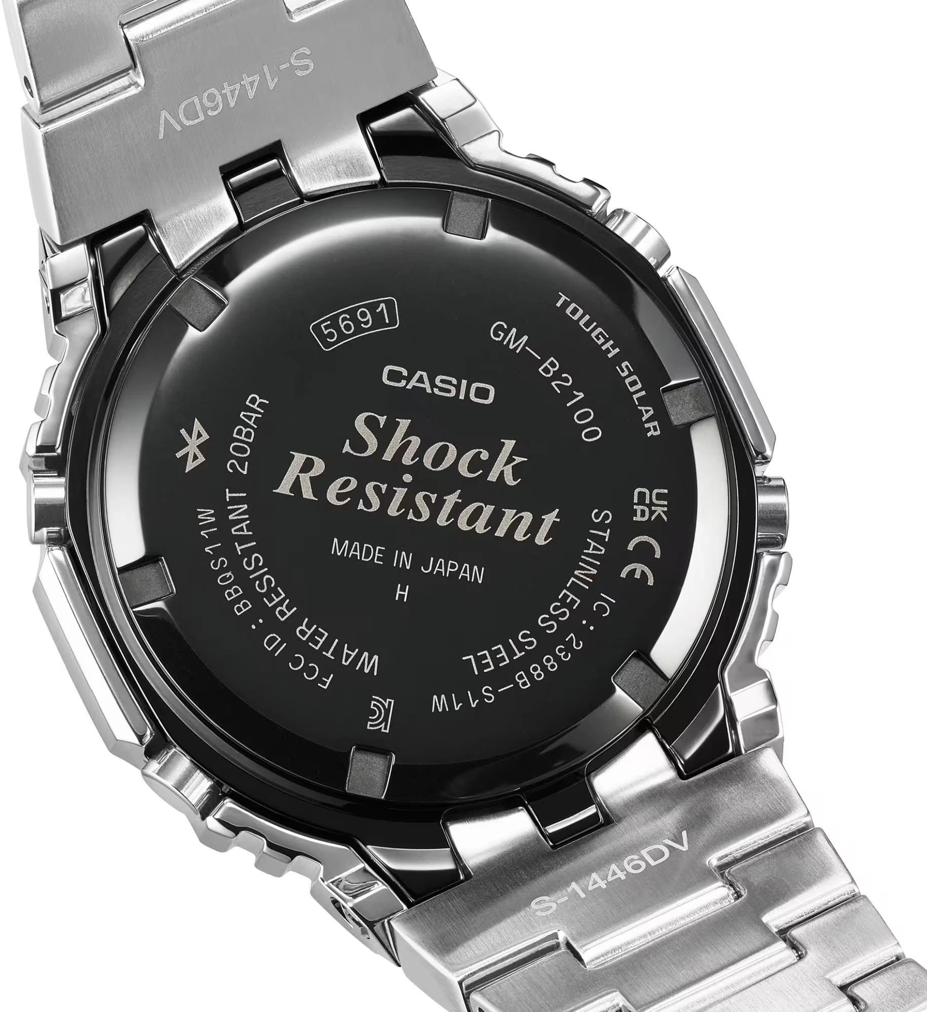 Новинка G-Shock конца 2025 года из серии GM-B2100 в полностью стальном корпусе в форме октагона. Новое цветовое сочетание черного безеля с IP покрытием и стального оттенка корпуса и браслета часов, создало лаконичный, узнаваемый и харизматичный образ модели. Модель имеет полностью стальной корпус с идеальной отделкой и литой браслет. В часах доступна синхронизация времени со смартфоном и легкая настройка часов через Bluetooth, а также улучшенная и еще более эффективная технология Tough Solar — питание часов от солнечного или иного источника света. Среди функций: водозащита 200 метров, ударопрочность, функции секундомера, таймера, мирового времени, удобная функцию складывания стрелок для считывания информации, а также яркая двойная подсветка циферблата и дисплея.
