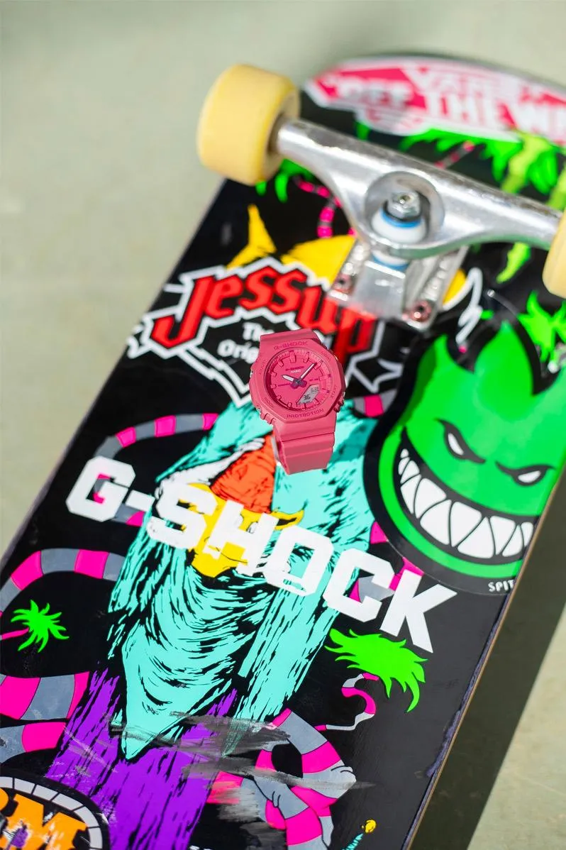 Женские наручные часы Casio G-Shock GMA-P2100-4A. Точный кварцевый механизм с аналого-цифровой индикацией. Полимерный ремешок. Натуральный полимерный материал является идеальным для изготовления ремешка благодаря своей чрезвычайной прочности и гибкости. После настройки автоматический календарь всегда отображает точную дату. Для подсветки дисплея используется светодиод, а так же имеет функцию автоматического включения подсветки, если Вы наклоните часы к своему лицу. Функция будильника. Ежечасный сигнал. Функция хронографа. Отображение текущего времени в основных городах и конкретных областях по всему миру. Функция перемещения стрелок. Нажатие на кнопку обеспечит перемещение стрелок в такое положение, которое позволит Вам легко считать информацию с маленьких цифровых дисплеев – например, дату или показатели секундомера. Функция таймера. Таймеры обратного отсчета напомнят Вам о текущих или особенных событиях, издав звуковой сигнал в установленное время. Ударопрочная конструкция часов защищает от ударов и вибрации. Отображение времени возможно в 12-часовом или 24-часовом формате. Полимерный ремешок. Натуральный полимерный материал является идеальным для изготовления ремешка благодаря своей чрезвычайной прочности и гибкости. Прочное, устойчивое к царапинам минеральное стекло защищает часы от повреждений. Часы являются водонепроницаемыми до 20 Бар. Цвет циферблата: Розовый. Цвет корпуса: Розовый. Светодиодная подсветка. Высота (с ушками): 46 мм. Толщина: 11 мм. Гарантия: 2 года.