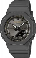 Женские часы GMA-P2126W-8A. В составе корпуса и ремешка — биопластик, который изготавливается из возобновляемых органических ресурсов. Противоударный корпус защищает механизм от ударов и вибрации. Двойная подcветка: циферблат и ЖК-дисплеи подсвечиваются светодиодом, благодаря наличию функции задержки, после отпускания кнопки освещение горит еще несколько секунд. Настраиваемое послесвечение 1,5 или 3сек. Цвет подсветки: белый. Необритовое светонакопительное покрытие обеспечивает длительное послесвечение в темноте даже после кратковременного нахождения на свету. 12-ти и 24-х часовой формат времени. Секундомер с двумя точностями показаний: 1/100с (до 1ч) и 1с (после 1ч) и временем измерения 24ч. Таймер обратного отсчета от 1с до 24ч. Мировое время – 48 городов (31 часовой пояс), всемирное координированное время (UTC). Функция включения/отключения летнего времени. Функции отключения/включения звука и перемещения стрелок для беспрепятственного просмотра информации на цифровом дисплее. 5 будильников, ежечасный сигнал. Автоматический календарь до 2099 года. Циферблат с метками в виде штрихов выполнен по технологии Sunray (солнечные лучи). Батарейка рассчитана на 3 года. Стальная задняя крышка крепится на 4-х винтах. Ремешок с классической застежкой.