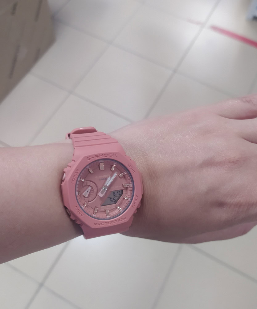 Женские наручные часы Casio G-Shock GMA-S2100BA-4A. Точный кварцевый механизм с аналого-цифровой индикацией. Полимерный корпус надежно защищает часы от механических повреждений. Светодиодная подсветка. На циферблате отображается текущее число, месяц и день недели. Ударопрочная конструкция часов защищает от ударов и вибрации. Функция хронографа. Функция таймера. Таймеры обратного отсчета напомнят Вам о текущих или особенных событиях, издав звуковой сигнал в установленное время. Функция будильника. Отображение текущего времени в основных городах и конкретных областях по всему миру. После настройки автоматический календарь всегда отображает точную дату. Отображение времени возможно в 12-часовом или 24-часовом формате. Полимерный ремешок. Натуральный полимерный материал является идеальным для изготовления ремешка благодаря своей чрезвычайной прочности и гибкости. Прочное, устойчивое к царапинам минеральное стекло защищает часы от повреждений.Часы являются водонепроницаемыми до 20 Бар. Цвет корпуса: Розовый. Цвет циферблата: Розовый. Ширина (с заводной головкой): 46мм. Толщина: 11мм. Гарантия: 2 года. Другие наименования модели: GMA-S2100BA-4AER.