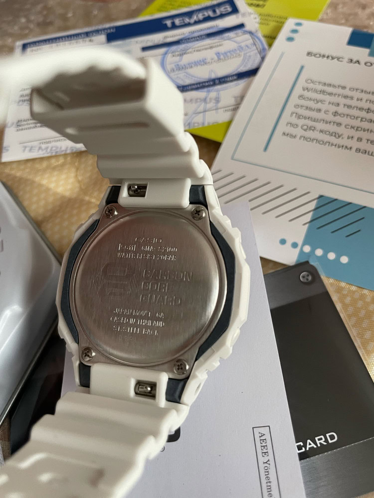 Часы обладают технологией Carbon Core Guard: их модуль защищает легкий и сверх-прочный полиуретановый корпус с углеродным армированием, а циферблат покрыт закаленным минеральным стеклом. Конечно же, не стоит забывать про стандартную для джишоков ударопрочность и водозащиту в 200 метров, функции секундомера, таймера, мирового времени, удобную функцию складывания стрелок для считывания информации с дисплеев, а также яркую двойную подсветку циферблата и дисплея. Светодиодная подсветка. Для подсветки дисплея используется светодиод. Ударопрочная конструкция защищает от ударов и вибрации. Функция мирового времени. Отображение текущего времени в основных городах и конкретных областях по всему миру. Функция секундомера- 1/100 сек. - 24 часа. Прошедшее время измеряется с точностью в 1/100 секунды. Пределы измерения достигают 24 часов. Таймер - 1/1 сек. - 24 часа. 5 ежедневных будильников. Функция перемещения стрелок. Нажатие на кнопку обеспечит перемещение стрелок в такое положение, которое позволит Вам легко считать информацию с маленьких цифровых дисплеев – например, дату или показатели секундомера. Включение/выключение звука кнопок.
