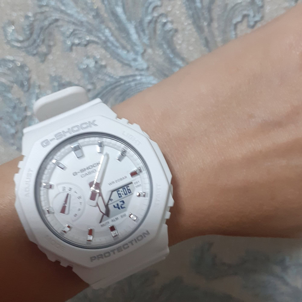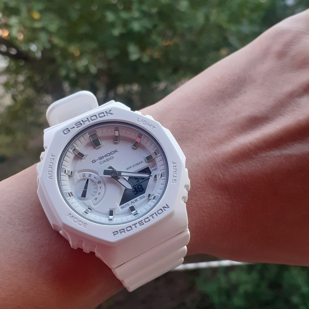 Женские наручные часы Casio G-Shock GMA-S2100SK-4A. Точный кварцевый механизм с аналоговой индикацией. Полимерный корпус надежно защищает часы от механических повреждений. Светодиодная подсветка. На циферблате отображается текущее число, месяц и день недели. Ударопрочная конструкция часов защищает от ударов и вибрации. Функция хронографа. Функция таймера. Таймеры обратного отсчета напомнят Вам о текущих или особенных событиях, издав звуковой сигнал в установленное время. Функция будильника. Отображение текущего времени в основных городах и конкретных областях по всему миру. После настройки автоматический календарь всегда отображает точную дату. Отображение времени возможно в 12-часовом или 24-часовом формате. Полимерный ремешок. Натуральный полимерный материал является идеальным для изготовления ремешка благодаря своей чрезвычайной прочности и гибкости. Прочное, устойчивое к царапинам минеральное стекло защищает часы от повреждений.Часы являются водонепроницаемыми до 20 Бар. Цвет корпуса: Серый. Цвет циферблата: Фиолетовый. Ширина (с заводной головкой): 46мм. Толщина: 11мм. Гарантия: 2 года. Другие наименования модели: GMA-S2100SK-4AER.