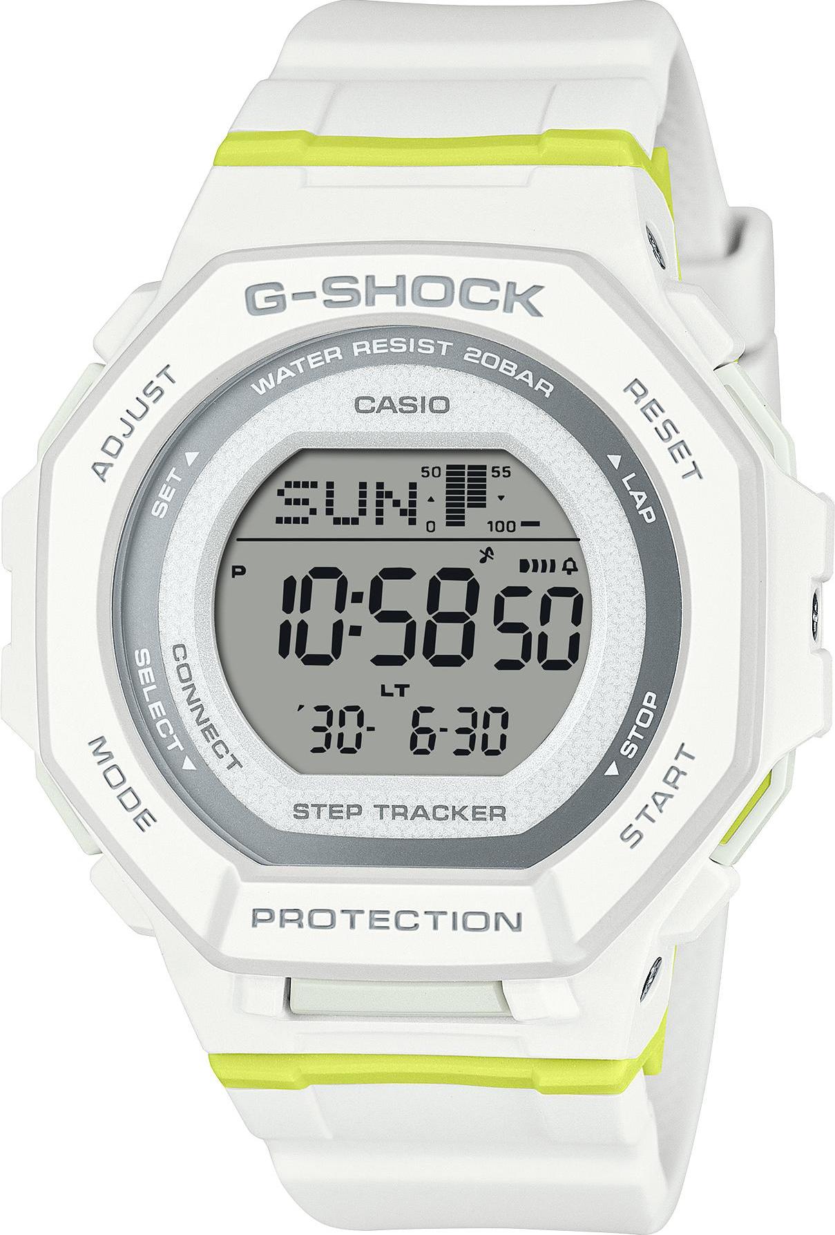 Женские наручные часы Casio G-Shock GMD-B300SC-7E. Точный кварцевый механизмУдаропрочная конструкция часов защищает от ударов и вибрации. Функция Bluetooth позволяет удобно отображать все метрики с часов на экране смартфона, а также выводить на часы уведомления о входящих звонках, сообщениях и имейлах. Шагомер. После настройки автоматический календарь всегда отображает точную дату. Отображение времени возможно в 12-часовом или 24-часовом формате. Аккумулятор обеспечивает часы достаточным питанием приблизительно на 2 года. Прочное, устойчивое к царапинам минеральное стекло защищает часы от повреждений. На циферблате отображается текущее число, месяц, год и день недели. Часы являются водонепроницаемыми до 20 Бар. Цвет циферблата: Белый. Цвет корпуса: Серый. Светодиодная подсветка. Толщина: 112 мм. Гарантия: 2 года.