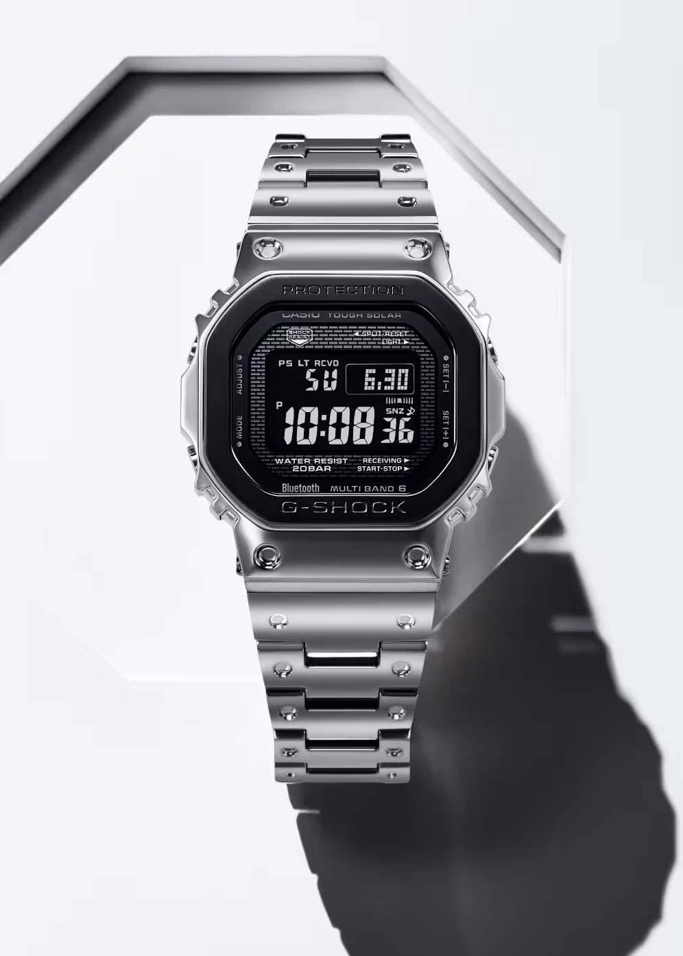 12-ти и 24-х часовой формат времени. Секундомер с двумя точностями показаний: 1/100с (до 1ч) и 1с (после 1ч) и временем измерения 24ч. Режимы измерения: прошедшее время, промежуточное время, время 1-го и 2-го места. Таймер обратного отсчета от 1c до 24ч. Мировое время — 39 городов (39 часовых поясов), всемирное координированное время (UTC). Возможность выбора до 5 городов в качестве избранных в WorldTime. Автоматический переход на зимнее и летнее время, возможность включения/отключения данной функции. Переключение между домашним и мировым временем. Технология Multi Band 6 позволяет принимать сигналы от шести радиовышек, расположенных в различных точках земного шара, которые передают временные сигналы от определенных атомных часов. Коррекция текущего времени радиосигналом почти по всему миру: Англия, Германия, США, Япония и Китай. Беспроводная технология Bluetooth® со сверхнизким потреблением энергии для синхронизации со смартфоном. При подключении к смартфону часы автоматически корректируют текущее время, в том числе переход на зимнее/летнее время, копируют настройки мирового времени более чем для 300 городов. Функции поиска телефона и включения/отключения звука. Отображение дней недели на шести языках. Смена отображения даты/месяца. Задняя крышка с винтовым фиксатором. Браслет с раскладывающейся тройной застежкой, расстегиваемой одним касанием.