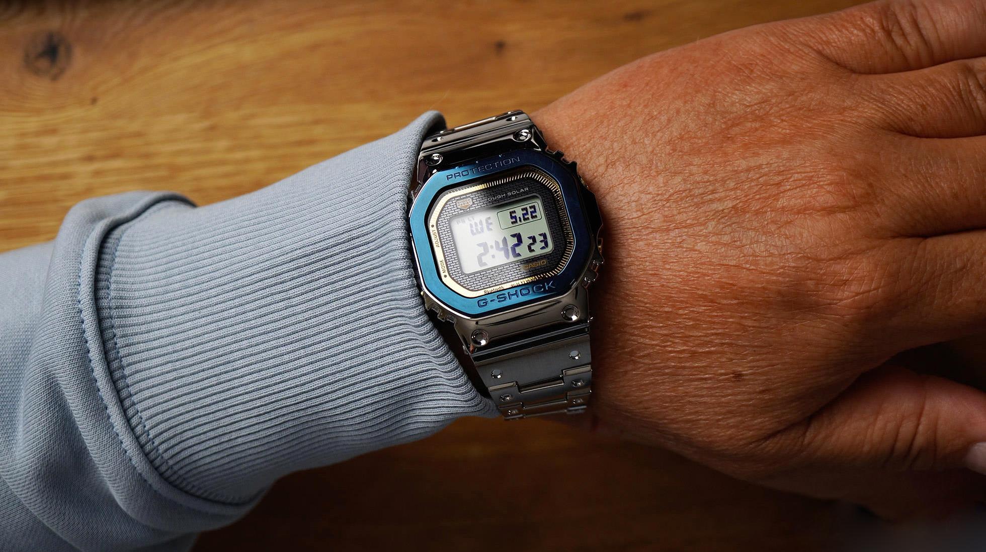 Мужские наручные часы Casio G-Shock GMW-B5000SS-2E. Точный кварцевый механизм с цифровой индикацей. В отличие от механических часов, не требуют завода и работают от батареи, показывая отклонение всего несколько секунд в месяц. Светодиодная подсветка обеспечивает равномерное и энергоэффективное освещение циферблата. Для активации обычно требуется нажатие отдельной кнопки, что позволяет экономить заряд батареи.Браслет из нержавеющей стали обладает высокой прочностью и износостойкостью, обеспечивая долговечность даже при активной эксплуатации. Материал устойчив к коррозии и сохраняет свой внешний вид надолго. После настройки автоматический календарь всегда отображает точную дату. Для подсветки дисплея используется светодиод, а так же имеет функцию автоматического включения подсветки, если Вы наклоните часы к своему лицу. Функция Bluetooth позволяет удобно отображать все метрики с часов на экране смартфона, а также выводить на часы уведомления о входящих звонках, сообщениях и имейлах. Функция будильника. Ежечасный сигнал. Функция хронографа. Отображение текущего времени в основных городах и конкретных областях по всему миру. Солнечная батарейка. Солнечная подзаряжающаяся батарейка обеспечивает питание часов для работы. Функция таймера. Таймеры обратного отсчета напомнят Вам о текущих или особенных событиях, издав звуковой сигнал в установленное время. Ударопрочная конструкция часов защищает от ударов и вибрации. Корпус изготовлен из высококачественной нержавеющей стали 316L с высокими антикоррозийными свойствами. Прочное, устойчивое к царапинам минеральное стекло защищает часы от повреждений. Часы являются водонепроницаемыми до 20 Бар. Цвет корпуса: Синий. Цвет циферблата: Серый. Высота (с ушками): 49.3 мм. Толщина: 13 мм. Гарантия: 2 года.