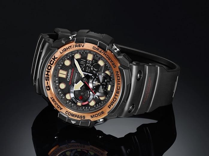 Все преимущества ударопрочных и водостойких часов в исполнении премиум-класса. Цифроаналоговая модель из серии GULFMASTER к традиционному многофункциональному набору имеет датчики компаса и термометра. Отображение графика приливов/отливов и фаз Луны