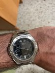 Мужские наручные часы Casio G-Shock GST-B500D-1A1. Точный кварцевый механизм с аналого-цифровой индикацией. Корпус изготовлен из высококачественной нержавеющей стали 316L с высокими антикоррозийными свойствами. Светодиодная подсветка. На циферблате отображается текущее число, месяц и день недели. Ударопрочная конструкция часов защищает от ударов и вибрации. Солнечная батарейка. Солнечная подзаряжающаяся батарейка обеспечивает питание часов для работы. Функция Bluetooth позволяет удобно отображать все метрики с часов на экране смартфона, а также выводить на часы уведомления о входящих звонках, сообщениях и имейлах. Функция хронографа. Функция таймера. Таймеры обратного отсчета напомнят Вам о текущих или особенных событиях, издав звуковой сигнал в установленное время. Индикатор запаса хода. Отображение текущего времени в основных городах и конкретных областях по всему миру. После настройки автоматический календарь всегда отображает точную дату. Отображение времени возможно в 12-часовом или 24-часовом формате. Браслет из нержавеющей стали. Прочное, устойчивое к царапинам минеральное стекло защищает часы от повреждений. Часы являются водонепроницаемыми до 20 Бар. Цвет корпуса: Серебристый. Цвет циферблата: Серый. Ширина (с заводной головкой): 47мм. Толщина: 13мм. Гарантия: 2 года. Другие наименования модели: GST-B500D-1A1ER, GST-B500D-1A1DR.