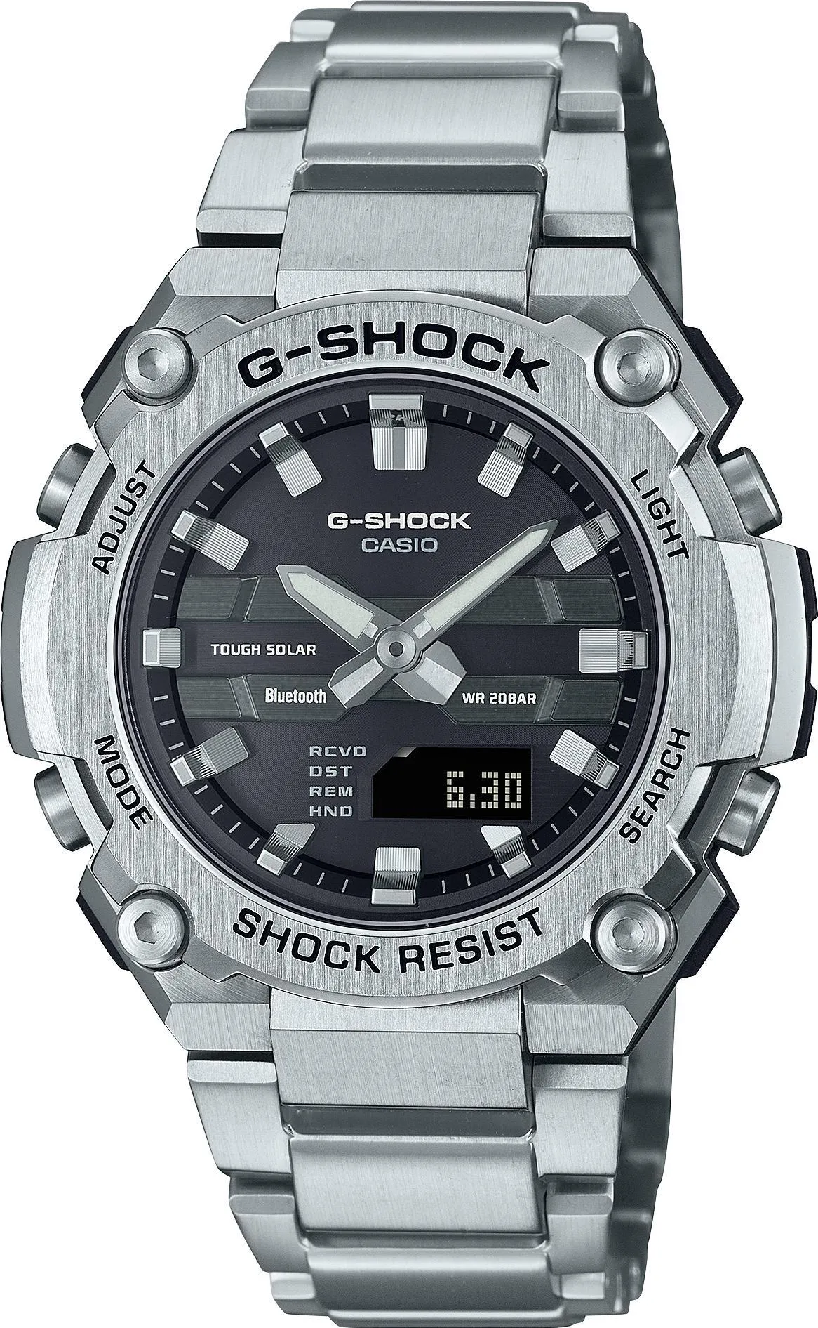 Мужские наручные часы Casio G-Shock GST-B600D-1A. Точный кварцевый механизм с аналого-цифровой индикацией. Браслет из нержавеющей стали. После настройки автоматический календарь всегда отображает точную дату. Для подсветки дисплея используется светодиод, а так же имеет функцию автоматического включения подсветки, если Вы наклоните часы к своему лицу. Функция Bluetooth позволяет удобно отображать все метрики с часов на экране смартфона, а также выводить на часы уведомления о входящих звонках, сообщениях и имейлах. Функция будильника. Ежечасный сигнал. Функция хронографа. Отображение текущего времени в основных городах и конкретных областях по всему миру. Функция перемещения стрелок. Нажатие на кнопку обеспечит перемещение стрелок в такое положение, которое позволит Вам легко считать информацию с маленьких цифровых дисплеев – например, дату или показатели секундомера. Солнечная батарейка. Солнечная подзаряжающаяся батарейка обеспечивает питание часов для работы. Функция таймера. Таймеры обратного отсчета напомнят Вам о текущих или особенных событиях, издав звуковой сигнал в установленное время. Ударопрочная конструкция часов защищает от ударов и вибрации. Отображение времени возможно в 12-часовом или 24-часовом формате. Браслет из нержавеющей стали. Прочное, устойчивое к царапинам минеральное стекло защищает часы от повреждений. На циферблате отображается текущее число месяца и день недели. Часы являются водонепроницаемыми до 20 Бар. Цвет циферблата: Серебристый. Цвет корпуса: Черный. Светодиодная подсветка. Высота (с ушками): 42 мм. Толщина: 11 мм. Гарантия: 2 года.