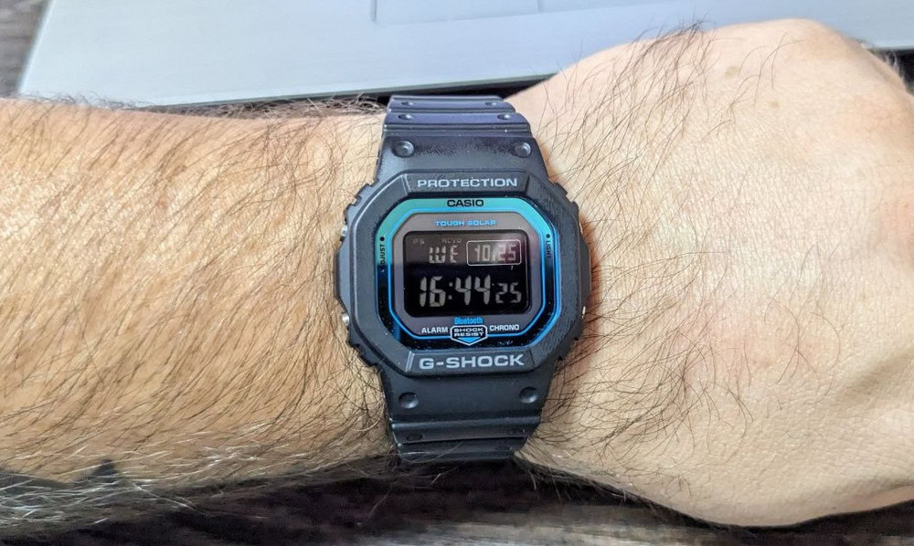 • Модель синхронизируется по Bluetooth со смартфоном через приложение G-Shock Connected, открывая возможность настроить время, поставить будильник и запустить таймер, помогая отыскать телефон.