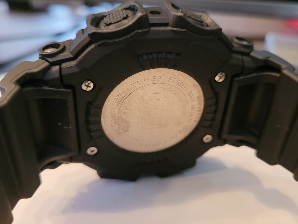 Мужские наручные часы Casio G-Shock GX-56RC-1E. Точный кварцевый механизм с аналоговой индикацией. Полимерный корпус надежно защищает часы от механических повреждений. Светодиодная подсветка. На циферблате отображается текущее число, месяц и день недели. Ударопрочная конструкция часов защищает от ударов и вибрации. Солнечная батарейка. Солнечная подзаряжающаяся батарейка обеспечивает питание часов для работы. Функция хронографа. Функция таймера. Таймеры обратного отсчета напомнят Вам о текущих или особенных событиях, издав звуковой сигнал в установленное время. Функция будильника. Индикатор запаса хода. Отображение текущего времени в основных городах и конкретных областях по всему миру. После настройки автоматический календарь всегда отображает точную дату. Отображение времени возможно в 12-часовом или 24-часовом формате. Полимерный ремешок. Натуральный полимерный материал является идеальным для изготовления ремешка благодаря своей чрезвычайной прочности и гибкости. Прочное, устойчивое к царапинам минеральное стекло защищает часы от повреждений. Часы являются водонепроницаемыми до 20 Бар. Цвет корпуса: Черный. Цвет циферблата: Черный. Ширина (с заводной головкой): 55мм. Толщина: 17мм. Гарантия: 2 года. Другие наименования модели: GX-56RC-1, GX-56RC-1D.