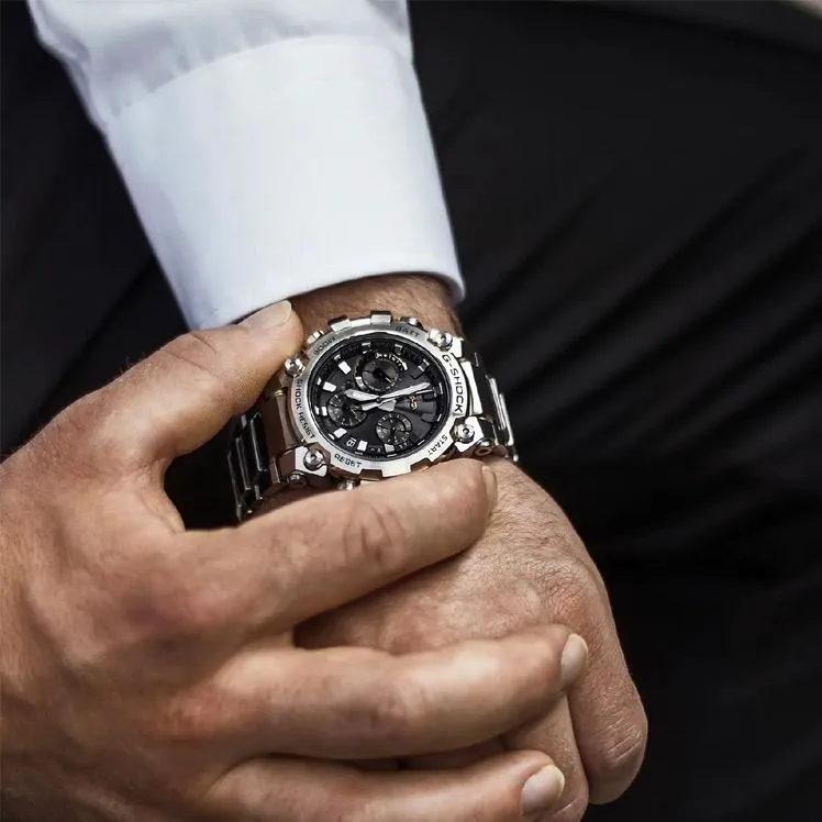 Мужские наручные часы Casio G-Shock MTG-B3000D-1A9. Точный кварцевый механизм с аналоговой индикацией. Браслет из нержавеющей стали. После настройки автоматический календарь всегда отображает точную дату. Автоматическая корректировака времени. Функция Bluetooth позволяет удобно отображать все метрики с часов на экране смартфона, а также выводить на часы уведомления о входящих звонках, сообщениях и имейлах. Функция будильника. Функция хронографа. Индикатор запаса хода. Отображение текущего времени в основных городах и конкретных областях по всему миру. Радио-синхронизация. Часы будут получать радио-сигнал калибровки, гарантирующий, что они всегда будут показывать точное время. Модель оснащена технологией SMART ACCESS, обеспечивающей быстрый и интуитивно понятный доступ ко всем важным функциям часов с помощью электронной заводной головки. Солнечная батарейка. Солнечная подзаряжающаяся батарейка обеспечивает питание часов для работы. Ударопрочная конструкция часов защищает от ударов и вибрации. Отображение времени возможно в 12-часовом или 24-часовом формате. Полимерный ремешок. Натуральный полимерный материал является идеальным для изготовления ремешка благодаря своей чрезвычайной прочности и гибкости. Браслет из нержавеющей стали. Сапфировое стекло. Искусственно изготовленное стекло с высокой прочностью и устойчивостью к царапинам. На циферблате отображается текущее число месяца и день недели. Часы являются водонепроницаемыми до 20 Бар. Цвет циферблата: Серебристый. Цвет циферблата: Желтое золото. Цвет корпуса: Серый. На стрелки и отметки нанесен светонакопительный состав, благодаря этому считывать информацию с циферблата возможно и в темноте. Толщина: 12 мм. Гарантия: 2 года.