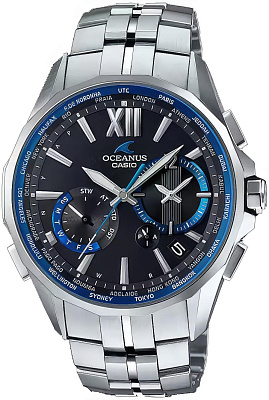 <b>Мужские наручные часы Casio Oceanus OCW-S100-1A</b>. Точный кварцевый механизм с аналоговой индикацией. Корпус изготовлен из высококачественной нержавеющей стали 316L с высокими антикоррозийными свойствами. На циферблате отображается текущее число месяца. Радио-синхронизация. Часы будут получать радио-сигнал калибровки, гарантирующий, что они всегда будут показывать точное время. Отображение текущего времени в основных городах и конкретных областях по всему миру. Автоматическая корректировака времени. Браслет из нержавеющей стали. Сапфировое стекло. Искусственно изготовленное стекло с высокой прочностью и устойчивостью к царапинам. Часы являются водонепроницаемыми до 10 Бар. Цвет корпуса: Серебристый. Цвет циферблата: Синий. Ширина (с заводной головкой): 42мм. Толщина: 11мм. Гарантия: 2 года. Другие наименования модели: OCW-S100-1AJF.