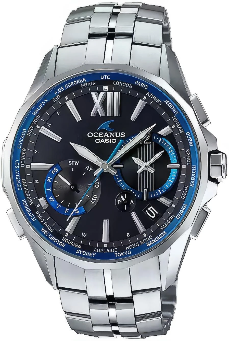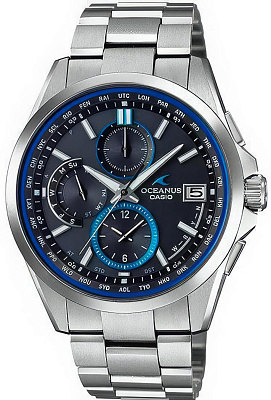 <b>Мужские наручные часы Casio Oceanus OCW-S3400-1A</b>. Точный кварцевый механизм с аналоговой индикацией. Корпус изготовлен из высококачественной нержавеющей стали 316L с высокими антикоррозийными свойствами. На стрелки и отметки нанесен светонакопительный состав, благодаря этому считывать информацию с циферблата возможно и в темноте. На циферблате отображается текущее число месяца и день недели. Солнечная батарейка. Солнечная подзаряжающаяся батарейка обеспечивает питание часов для работы. Радио-синхронизация. Часы будут получать радио-сигнал калибровки, гарантирующий, что они всегда будут показывать точное время. Встроенный цифровой компас определяет северный магнитный полюс. Отображение текущего времени в основных городах и конкретных областях по всему миру. Браслет из нержавеющей стали. Сапфировое стекло. Искусственно изготовленное стекло с высокой прочностью и устойчивостью к царапинам. Часы являются водонепроницаемыми до 10 Бар. Цвет корпуса: Серебристый. Цвет циферблата: Черный. Ширина (с заводной головкой): 44мм. Толщина: 11мм. Гарантия: 2 года. Другие наименования модели: OCW-S3400-1AJF.