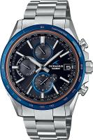 Мужские наручные часы Casio Oceanus OCW-T4000D-1A. Точный кварцевый механизм с аналоговой индикацией. Корпус изготовлен из высокопросчного титана. На стрелки и отметки нанесен светонакопительный состав, благодаря этому считывать информацию с циферблата возможно и в темноте. На циферблате отображается текущее число месяца. Солнечная батарейка. Солнечная подзаряжающаяся батарейка обеспечивает питание часов для работы. Радио-синхронизация. Часы будут получать радио-сигнал калибровки, гарантирующий, что они всегда будут показывать точное время. Функция Bluetooth позволяет удобно отображать все метрики с часов на экране смартфона, а также выводить на часы уведомления о входящих звонках, сообщениях и имейлах. Функция хронографа. Индикатор запаса хода. После настройки автоматический календарь всегда отображает точную дату. Титановый браслет. Сапфировое стекло. Искусственно изготовленное стекло с высокой прочностью и устойчивостью к царапинам. Часы являются водонепроницаемыми до 10 Бар. Цвет корпуса: Серебристый, синий, розовое золото. Цвет циферблата: Черный. Ширина (с заводной головкой): 48мм. Толщина: 12мм. Гарантия: 2 года. Другие наименования модели: OCW-T4000D-1AJF.