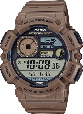 Мужские наручные часы Casio Sports WS-1500H-5A. Точный кварцевый механизм с цифровой индикацей. В отличие от механических часов, не требуют завода и работают от батареи, показывая отклонение всего несколько секунд в месяц. Светодиодная подсветка обеспечивает равномерное и энергоэффективное освещение циферблата. Для активации обычно требуется нажатие отдельной кнопки, что позволяет экономить заряд батареи.Полимерный ремешок. Натуральный полимерный материал является идеальным для изготовления ремешка благодаря своей чрезвычайной прочности и гибкости. После настройки автоматический календарь всегда отображает точную дату. Аккумулятор обеспечивает часы достаточным питанием приблизительно на 10 лет. Функция будильника. Функция хронографа. Отображение текущего времени в основных городах и конкретных областях по всему миру. Функция таймера. Таймеры обратного отсчета напомнят Вам о текущих или особенных событиях, издав звуковой сигнал в установленное время. Ударопрочная конструкция часов защищает от ударов и вибрации. Отображение времени возможно в 12-часовом или 24-часовом формате. Полимерный корпус надежно защищает часы от механических повреждений. Органическое стекло. Часы являются водонепроницаемыми до 10 Бар. Цвет корпуса: Коричневый. Цвет циферблата: Коричневый. Высота (с ушками): 54.5 мм. Толщина: 16.8 мм. Гарантия: 2 года. Другие наименования модели: WS-1500H-5AVDF, WS-1500H-5AVD, WS-1500H-5AV.
