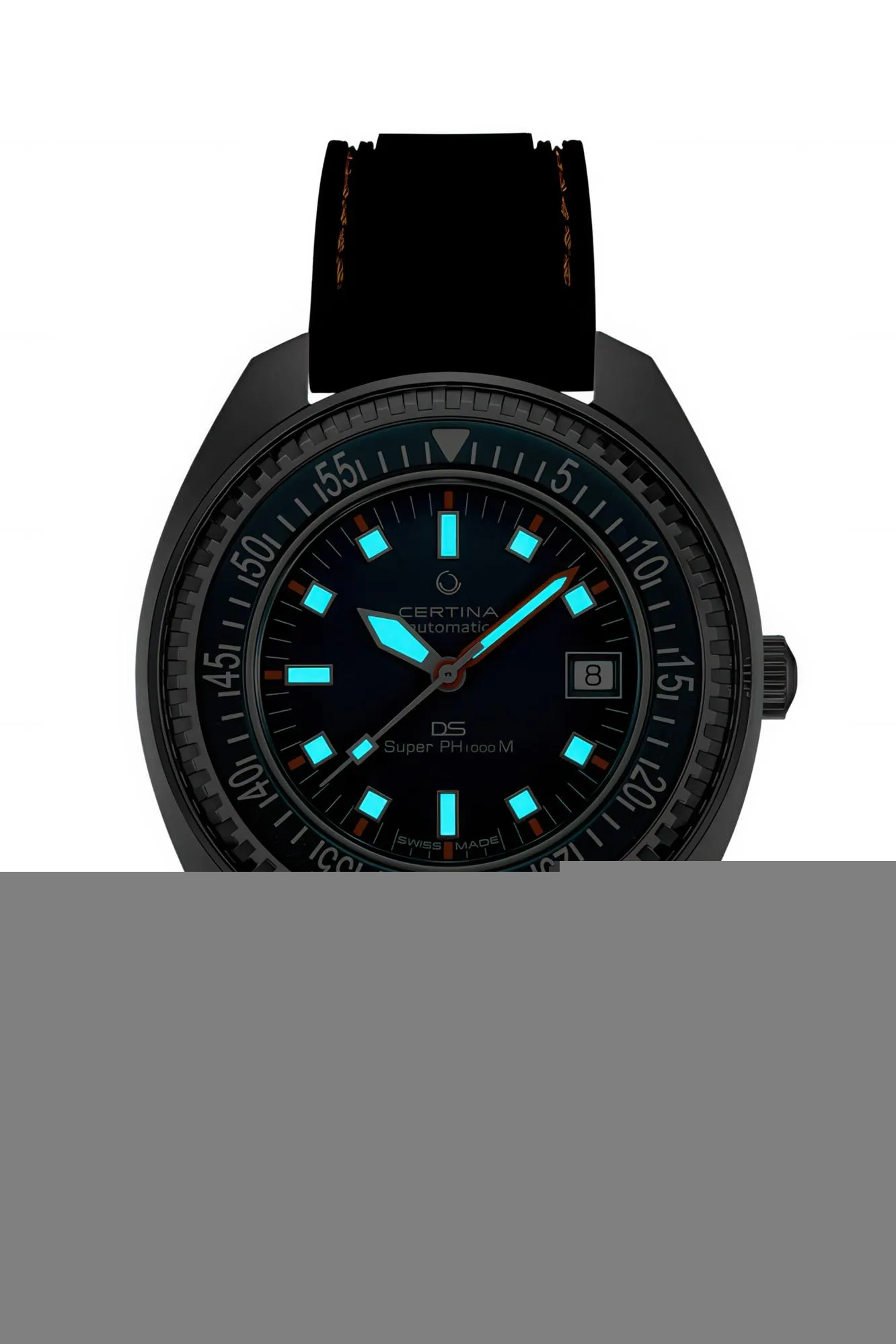 Certina Мужские швейцарские часы DS PH1000M C024.907.17.041.10. Механические с автоподзаводом. Пружина механизма заводится автоматически благодаря естественным движениям владельца в процессе ежедневной носки часов. На стрелки и отметки нанесен светонакопительный состав, благодаря этому считывать информацию с циферблата возможно и в темноте. Ремешок изготовлен из каучука. Корпус изготовлен из высококачественной нержавеющей стали 316L с высокими антикоррозийными свойствами. Корпус изготовлен из высококачественного алюминиевого сплава. Сапфировое стекло. Искусственно изготовленное стекло с высокой прочностью и устойчивостью к царапинам. Часы являются водонепроницаемыми до 100 Бар. Цвет корпуса: Серебристый. Цвет циферблата: Голубой. Высота (с ушками): 44 мм. Толщина: 13 мм. Гарантия: 2 года.