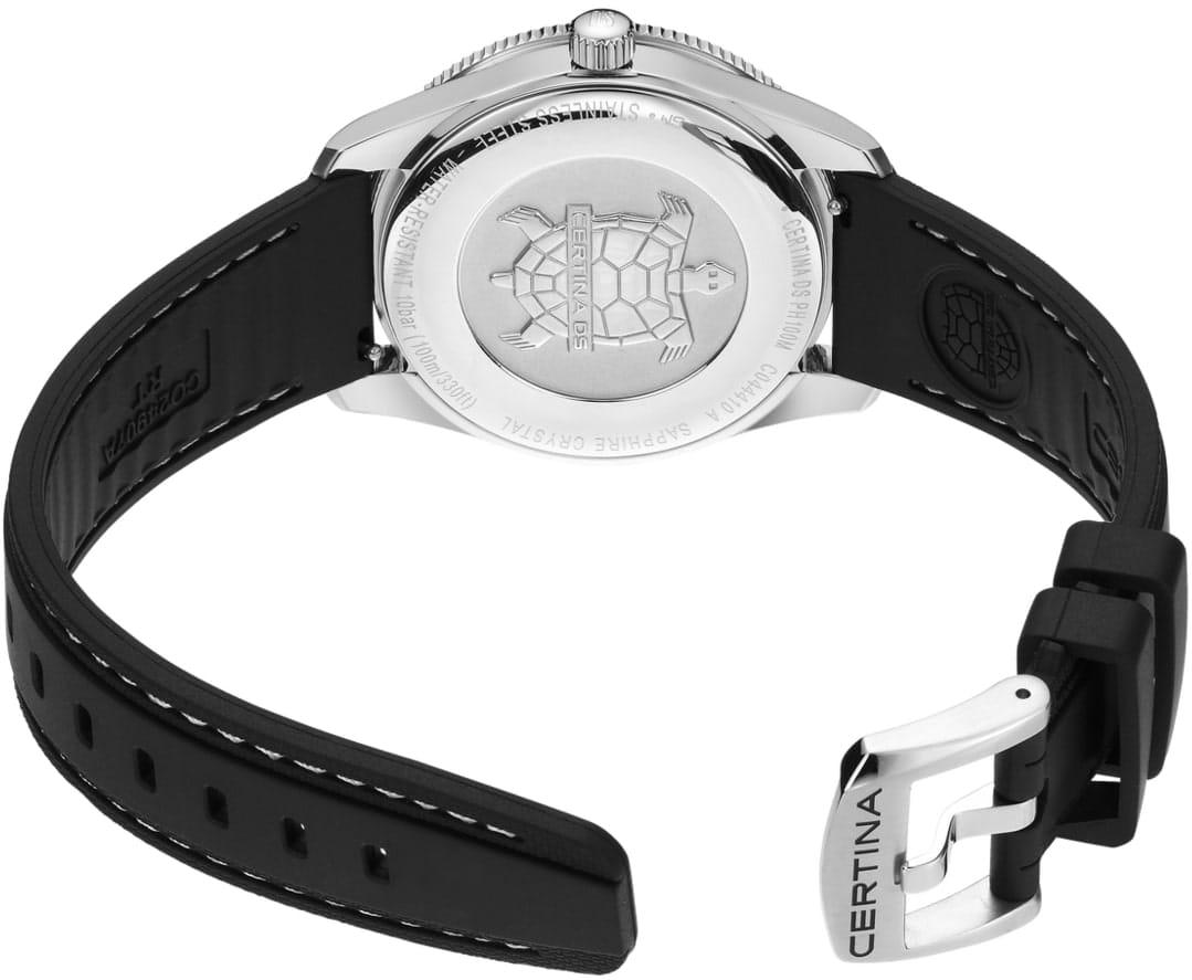 Certina DS PH100M Gent — мужские часы, оснащенные кварцевым механизмом Precidrive, обеспечивающим исключительную точность. Дизайн часов вдохновлен прочными моделями 1970-х годов, сочетая в себе спортивную элегантность и морское наследие. Водонепроницаемость часов достигает 10 бар (100 метров), что гарантирует их надежность в повседневной жизни. Стрелки и индексы с покрытием Super-LumiNova обеспечивают оптимальную читаемость показаний даже в условиях слабого освещения. Эти часы воплощают приверженность Certina швейцарскому качеству и мастерству часового дела.