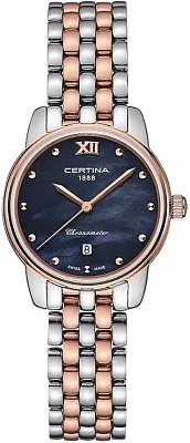 Certina Женские швейцарские часы DS Stella C018.210.11.110.00. Точный кварцевый механизм с аналоговой индикацией. В отличие от механических часов, не требуют завода и работают от батареи, показывая отклонение всего несколько секунд в месяц. Браслет из нержавеющей стали обладает высокой прочностью и износостойкостью, обеспечивая долговечность даже при активной эксплуатации. Материал устойчив к коррозии и сохраняет свой внешний вид надолго. Корпус изготовлен из высококачественной нержавеющей стали 316L с высокими антикоррозийными свойствами. Сапфировое стекло. Искусственно изготовленное стекло с высокой прочностью и устойчивостью к царапинам. Часы являются водонепроницаемыми до 10 Бар. Цвет корпуса: Серебристый. Цвет циферблата: Перламутровый. Толщина: 7 мм. Гарантия: 2 года.